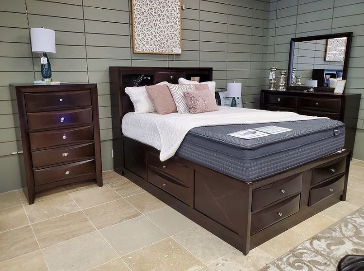 Brand New Queen Bedroom Set 4 Piece Storage Platform -