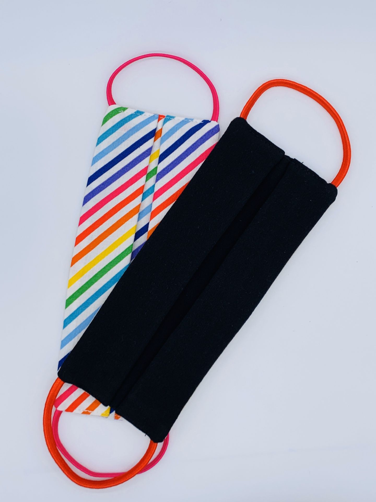 Multiple double sided/reversible washable face masks. Protect yourself and your loved ones. Pre-made or custom. The choice is yours! Tested with an aerosol spray (you can't blow out a candle with this mask). New colors just added! Rainbow Print African Kente Print Floral Fabrics (all kinds) White and pink polka dots Yellow and white Polka dots We don't want to rush the quality of your order. I can make kid sizes as well! Thank you for the orders. My mother and I are working hard to fulfill them.