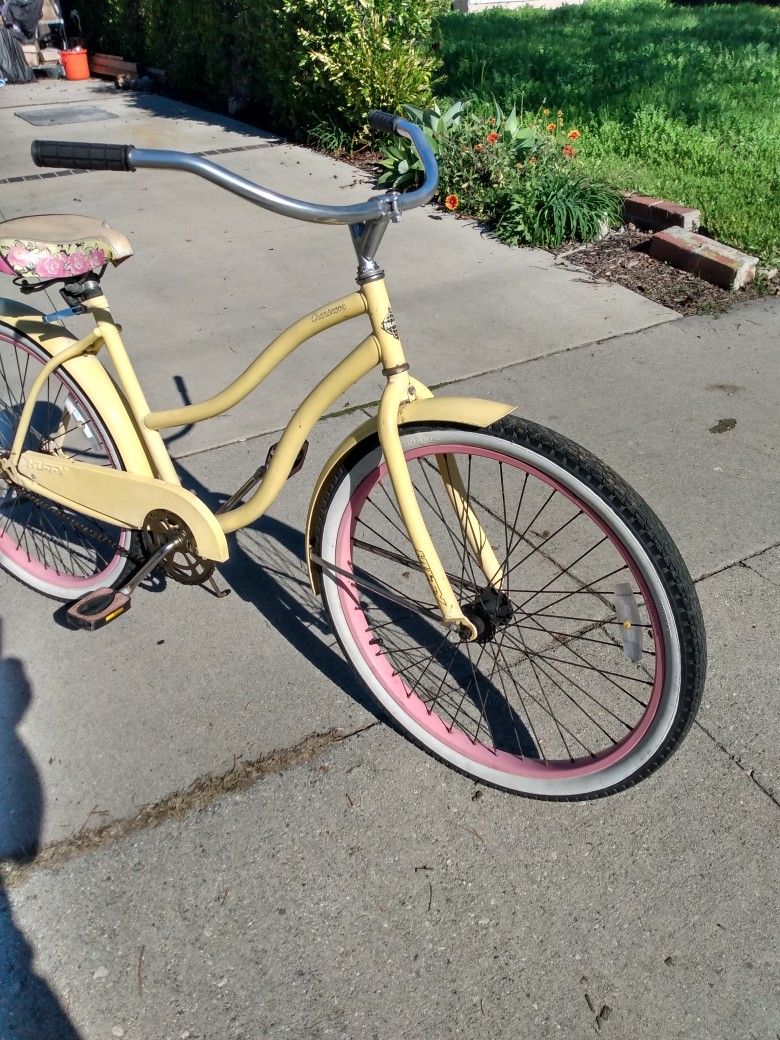 All of these bikes just cleaned and lubed and ready to ride.Firmstrong Urban 24-in wheel, only $55, purple Huffy Cranbrook 24 inch, only $55, yellow Huffy Cranbrook with pink wheels, 26 inch, $70. 26 in blue or black Nirve Cruisers, 55, and $70. Please specify which one you're interested in when inquiring, thanks so much for looking!