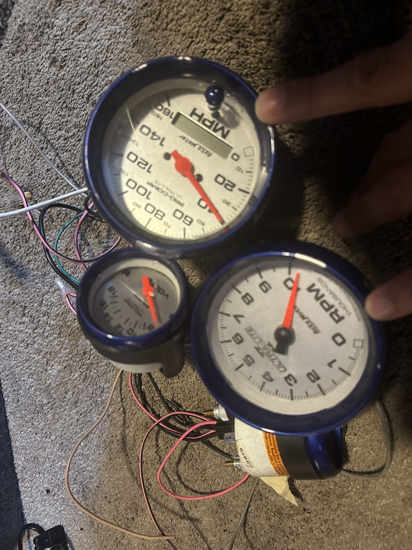 Tach, speedometer, fuel gauge, oil pressure gauge, temp gauge, and volts. I had them for a project not gonna be using them