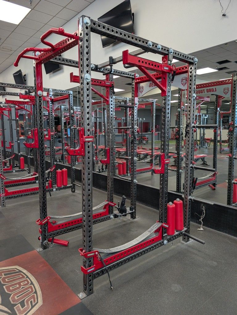This is a custom Base Camp rack with University of New Mexico customization. Sorinex is the best of the best. Get a rack that will outlive you and at half the cost! You cannot buy a base camp rack without customization. This is a type of rack professional teams, players and organizations have. 3x3, 2 inch spacing, 1 inch holes. Everything you see on the rack including the rack is included. Height is 101 inches Pick up only. Can fit in a 6 foot truck bed but trailer would work best Rogue, rouge, ivanko