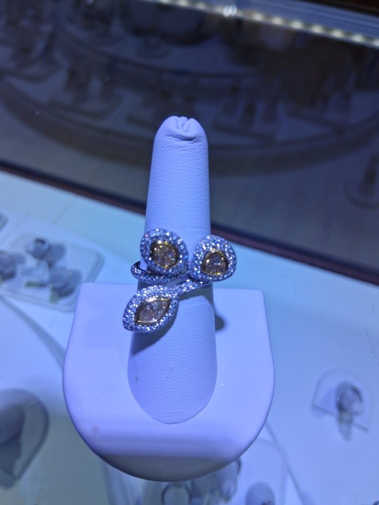 Fancy Yellow Diamonds With Diamonds On 18k White Gold Ladies Ring