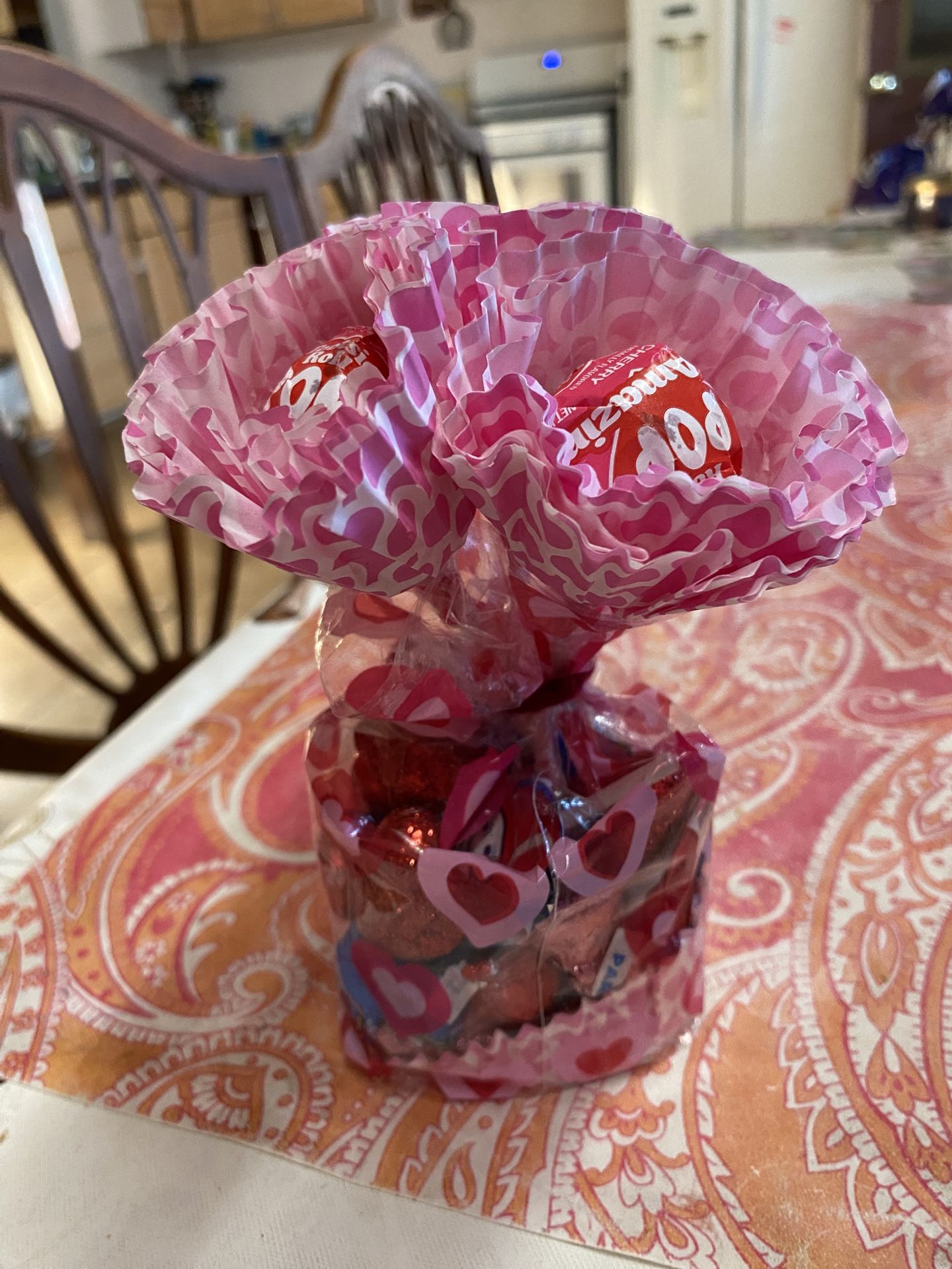 Valentines baggies of candies . With kisses jolly rancher airheads . Flower made with lollipops . Great for valentines gift for kids. Dm me if interested .