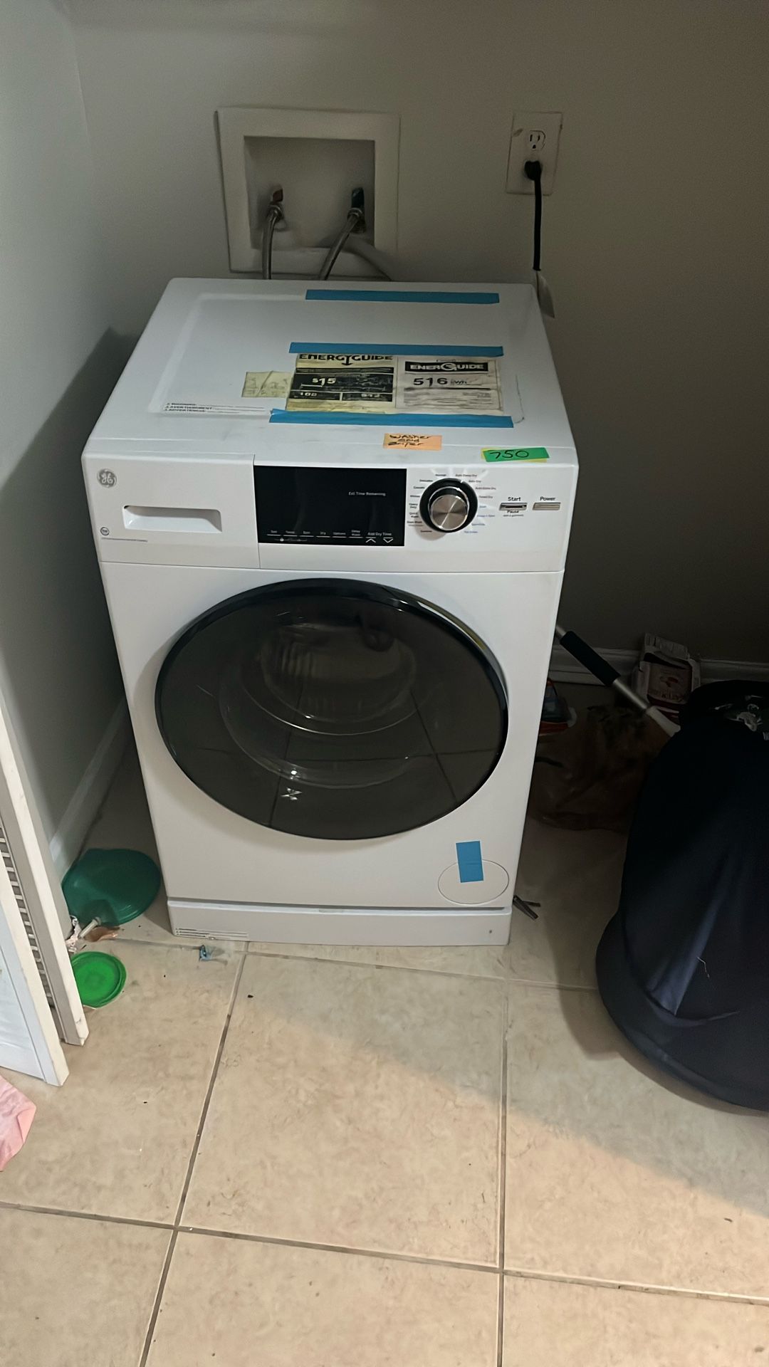 Less than a year old. Works perfectly. Super quiet with touch screen. Easy setup with connection cords included.