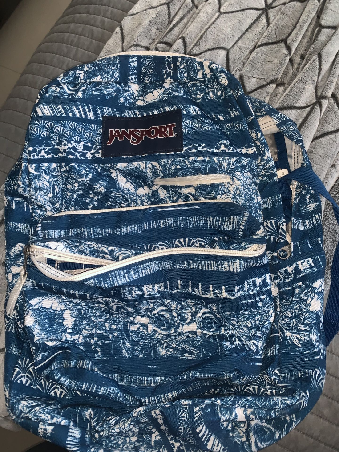 used a couple times, no noticeable wear, has an ipad pocket with fleece and a phone pocket as well as a laptop slot this bookbag and a plain gray Jansport one for $40 open to offers