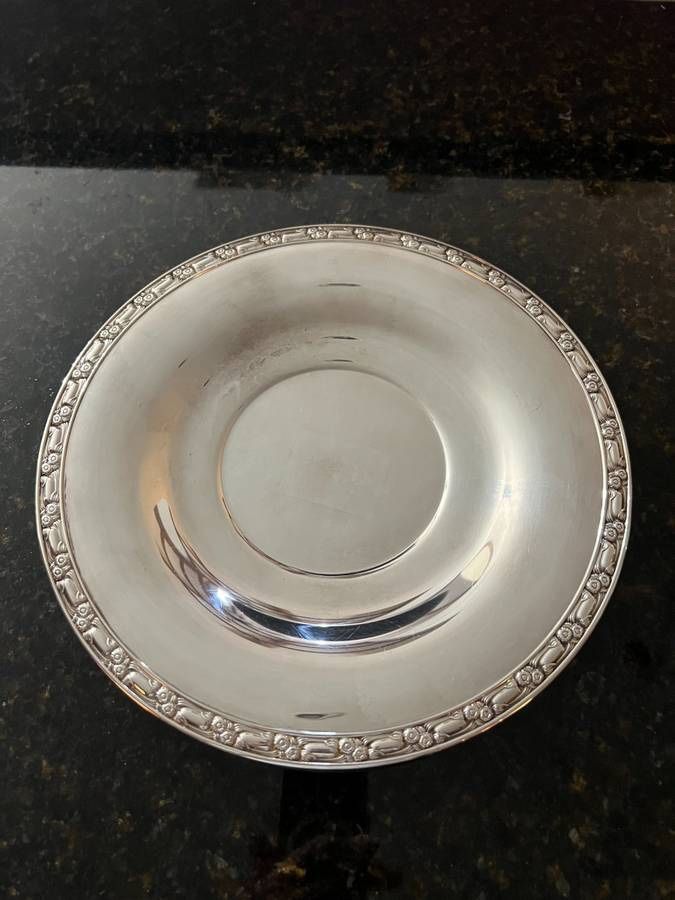 Beautiful Oneida Silver Plated Round Serving Dish with ornate design that is in excellent condition and measures 11.25" in diameter.