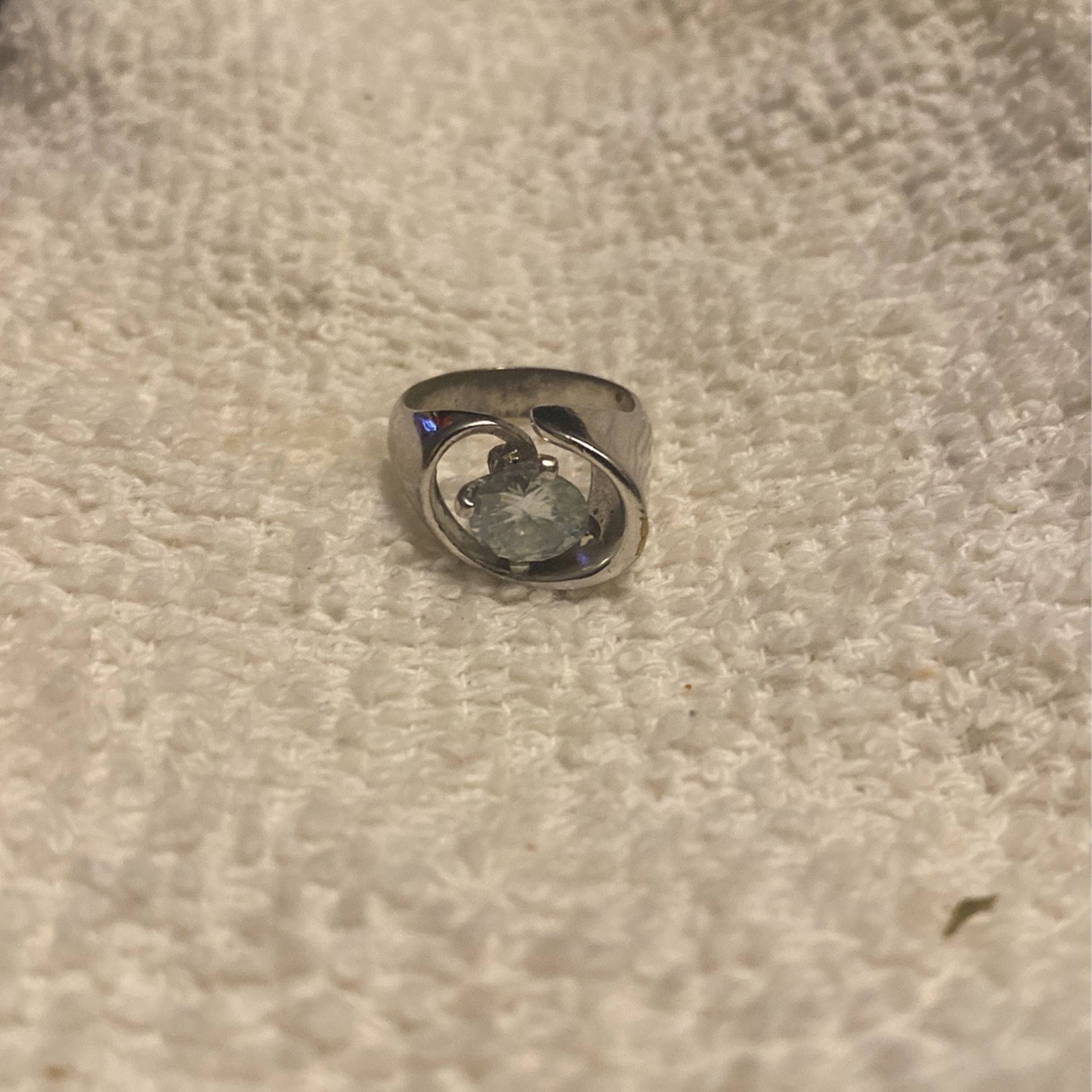 A ring at a size 6.25US made of sterling silver with a moissanite diamond at 2.20 carats VVS1 lab created diamond.