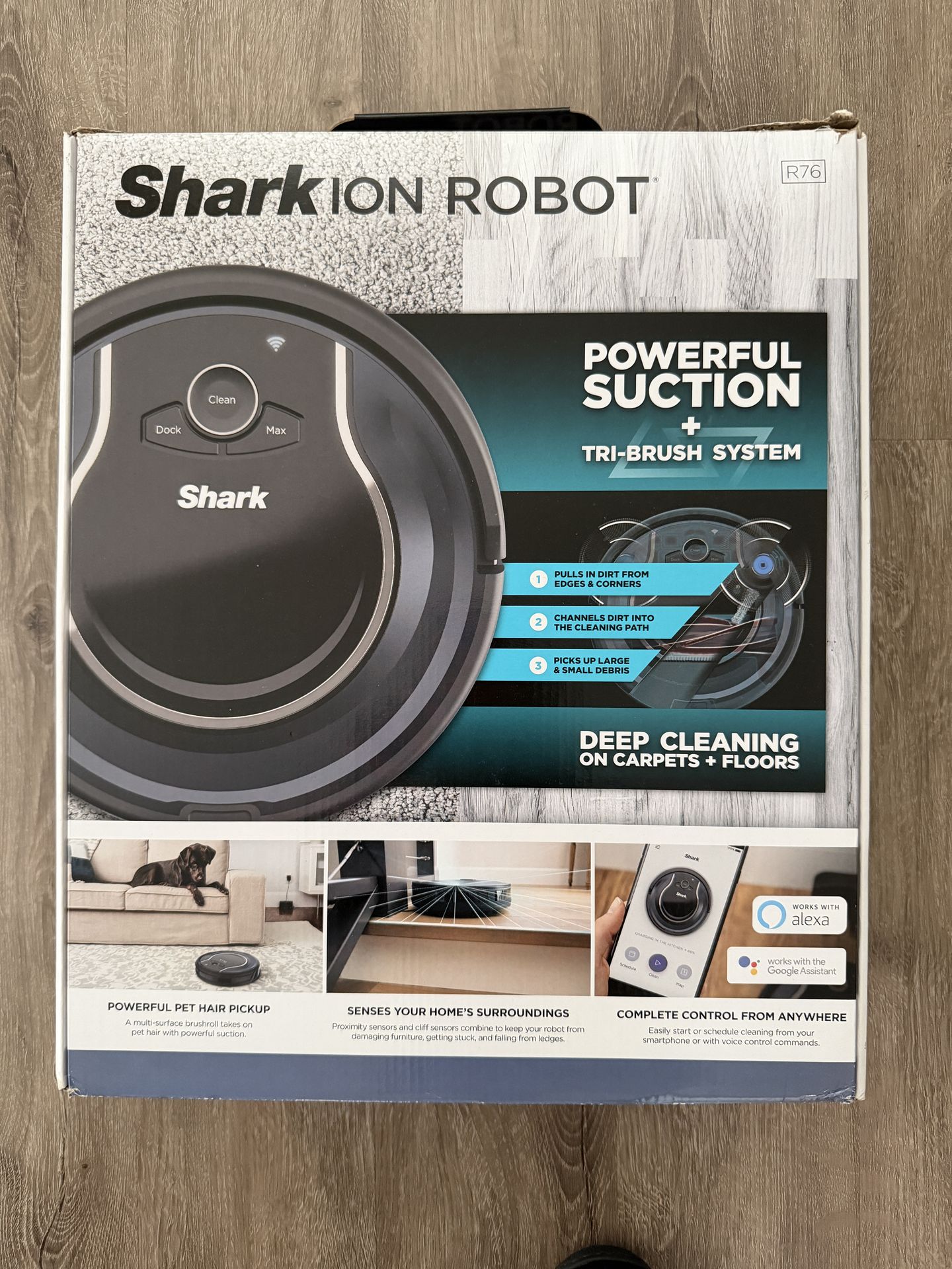 Selling a Shark ION Robot Vacuum RV750/RV760 Wi‑Fi Connected in good used condition with original box. Works great and is perfect for automatic cleaning of carpets and hard floors. Originally purchased for around $300+, making this a great deal for someone looking for a reliable robot vacuum. 📍 Pickup: Oakland, CA 94603 Condition: Used, fully functional and well maintained. Key Features • Tri-Brush Cleaning System (side brushes, channel brushes, and multi-surface brushroll) • Powerful suction for carpets and hard floors • Wi-Fi connectivity – control and schedule cleaning from your phone using the Shark app • Voice control compatible with Amazon Alexa and Google Assistant • Smart navigation sensors to avoid obstacles and stairs • Lithium-ion battery with long runtime • Automatic docking and recharging • Edge and corner cleaning Included (Everything Shown in Photos) • Shark ION Robot Vacuum (RV750 / RV760 Wi-Fi Connected) • Charging dock • Power adapter • Side brushes • Extra filter • Owner’s manual • Original box and packaging Message me if you’re interested or have any questions!