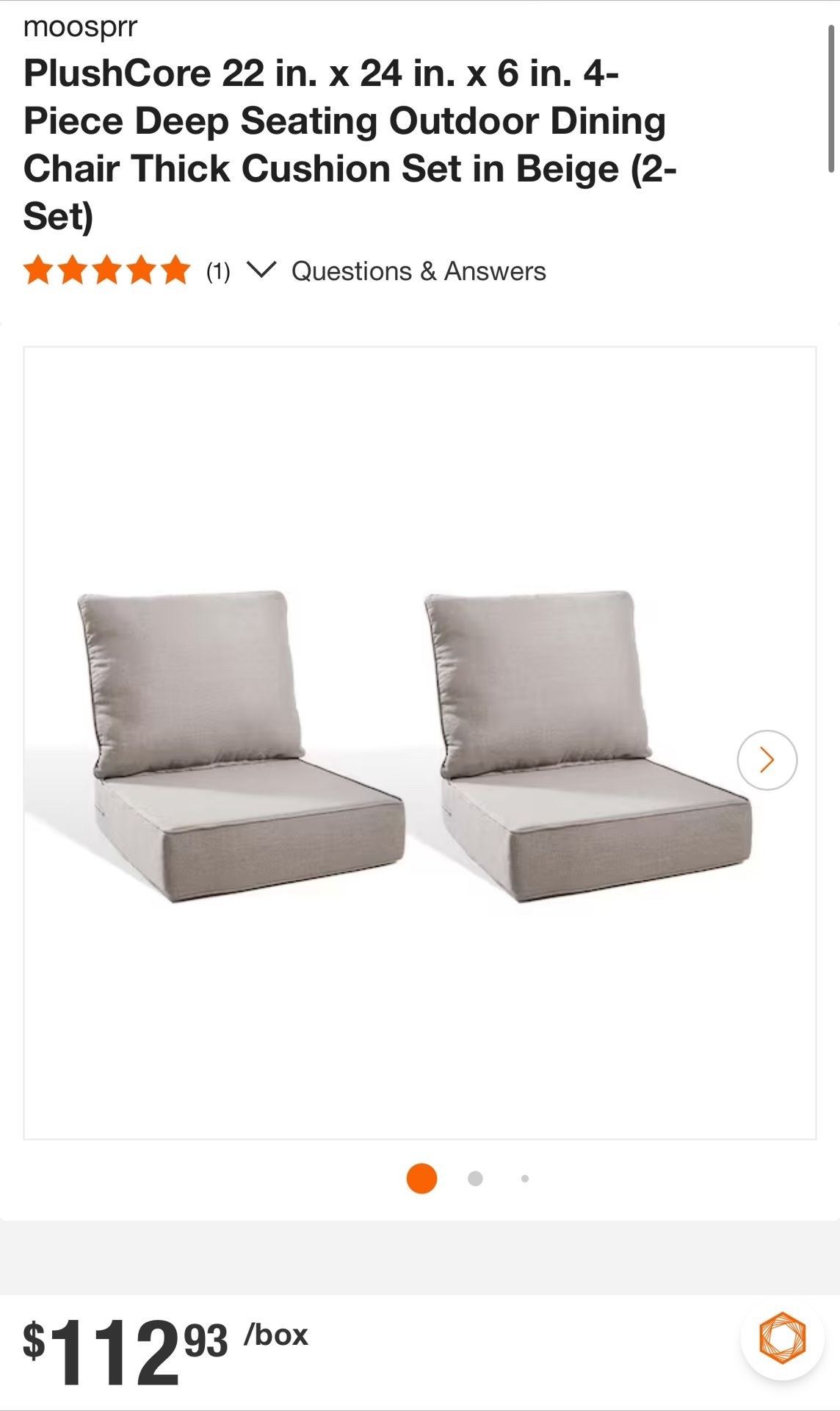 PlushCore 22 in. x 24 in. x 6 in. 4-Piece Deep Seating Outdoor Dining Chair Thick Cushion Set in Beige (2-Set)