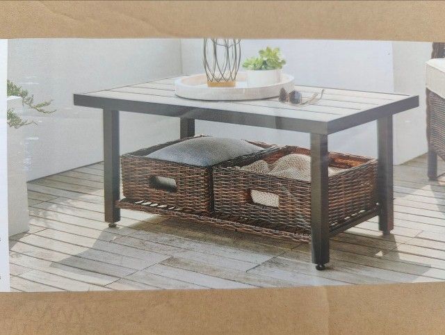 Brand new in box coffee table. Color brown. Can be for indoor or outdoor. Make offer