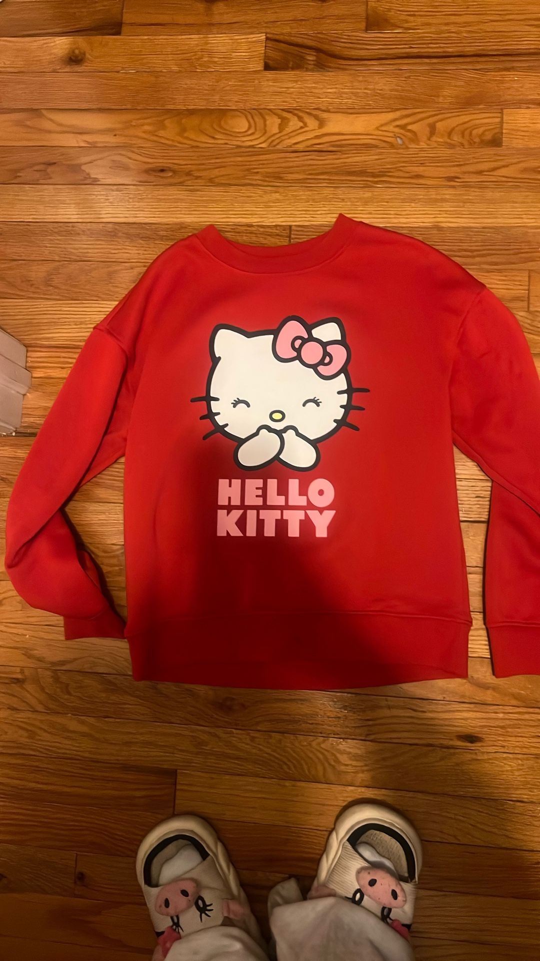 This is a hello kitty sweatshirt in the color I’ve never where did in my life because it never fit me