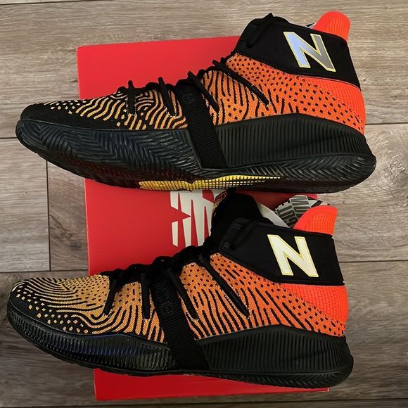 It's not used. Doesn't have a box. It's good. Value. Red yellow. Black. New balance. Size 9.5. US. Top part is soft