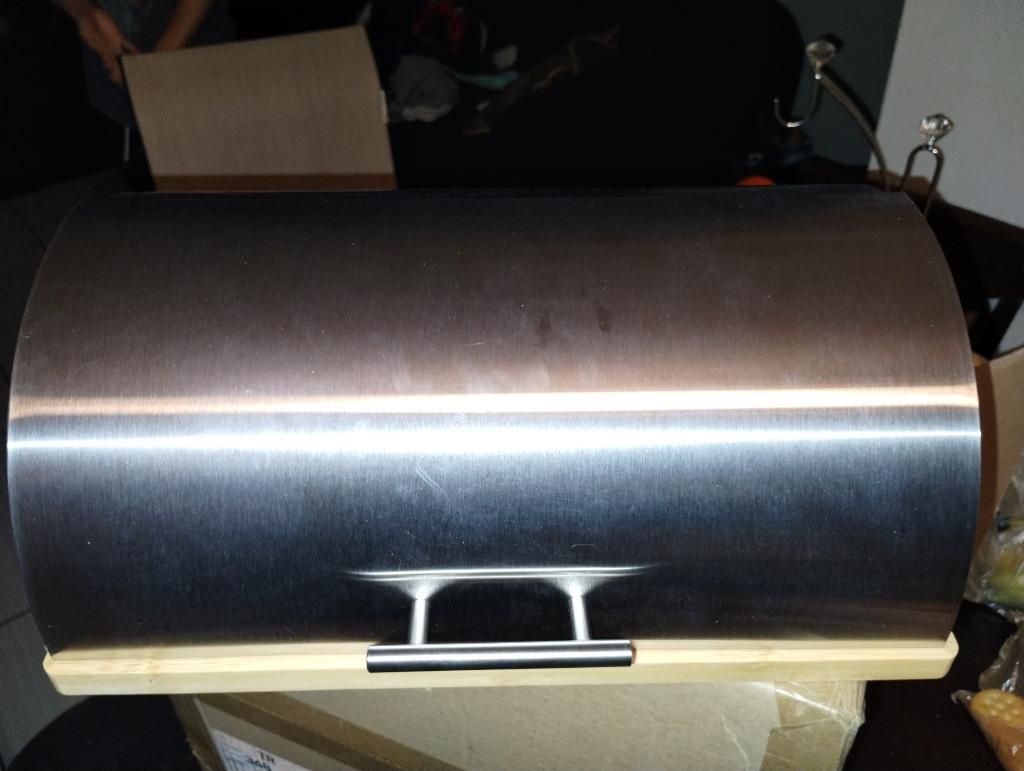 Pretty cute bread display. Fancy looking. Brand new breadbox with bamboo base.