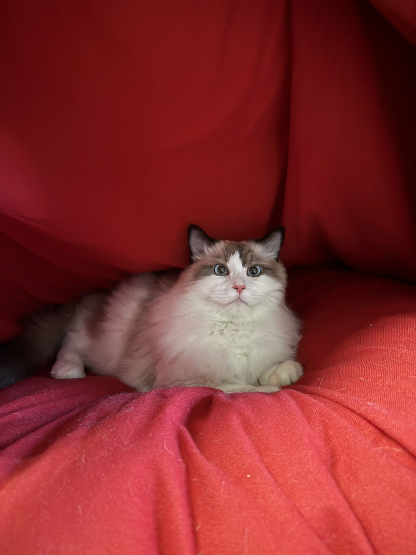 No tears and or rips. No stains In good condition. It does not stand all the way up because my cat was doing WWE π I dont have the room to keep it. Pretty big in the inside. My cat is 11lbs and still have plenty of room. Near SDSU