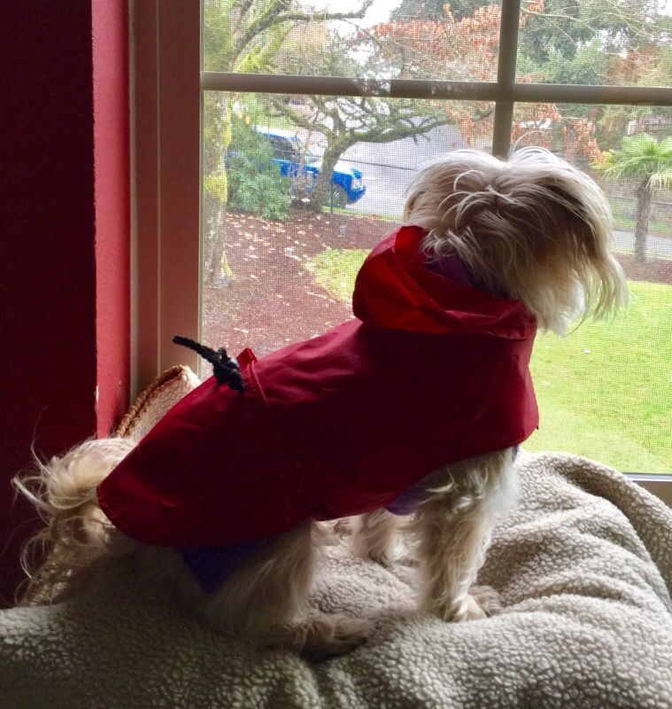 BRAND NEW NEVER WORN Keep Fido warm and not restricted with a raincoat that lets them move ! Pouch on back for treats , wipes, potty pick up bags etc. xs-med