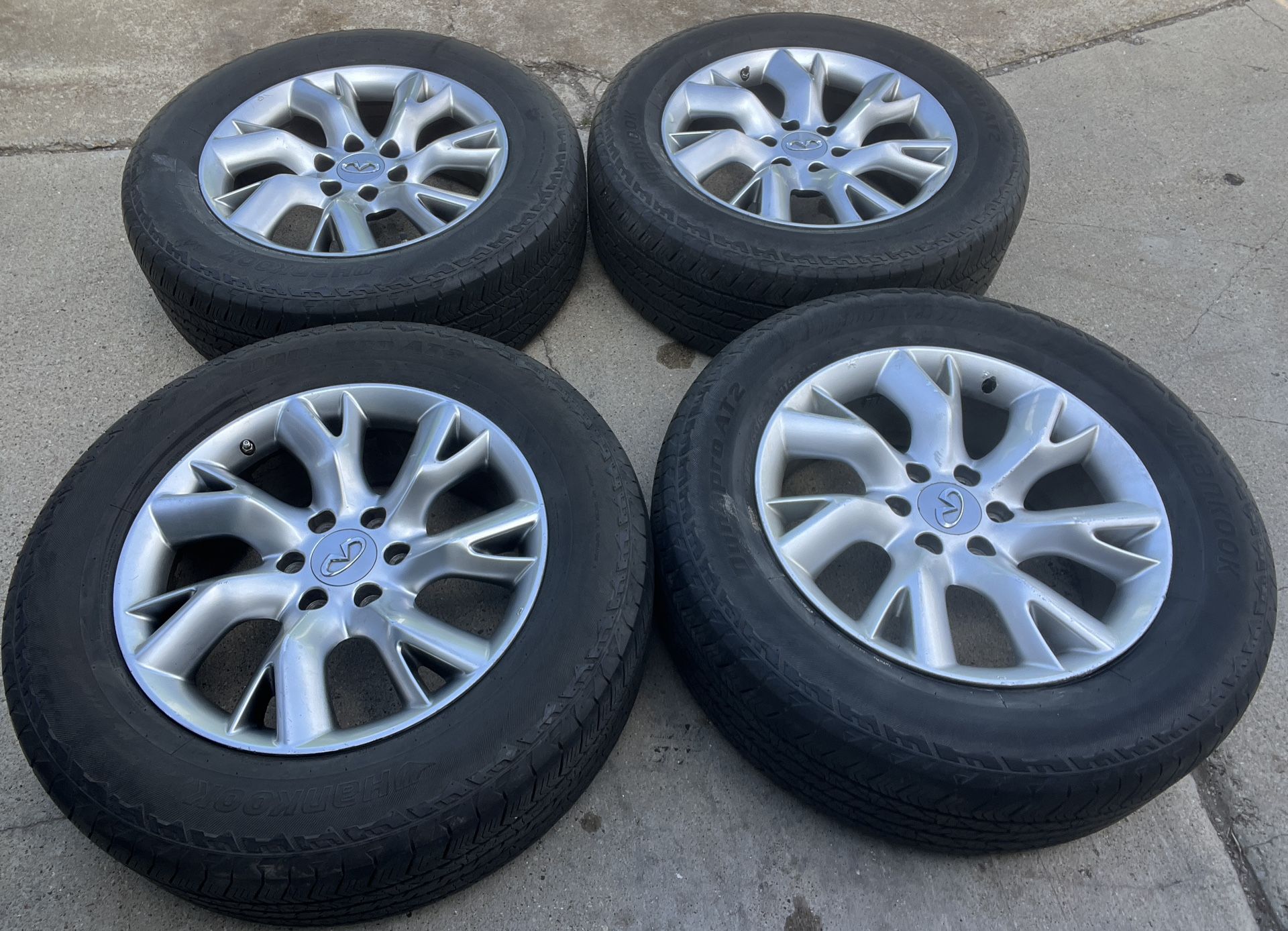 Selling Nice Set of: 20” Infiniti QX80 QX56 Armada Factory OEM Wheels Rims Tires 20 inch center caps included. Wheels are in great condition! Tires: Size/ Brand 275/60/20 275/60r20 Approx. 80% tread. Bridgestone All Season Tires Joe