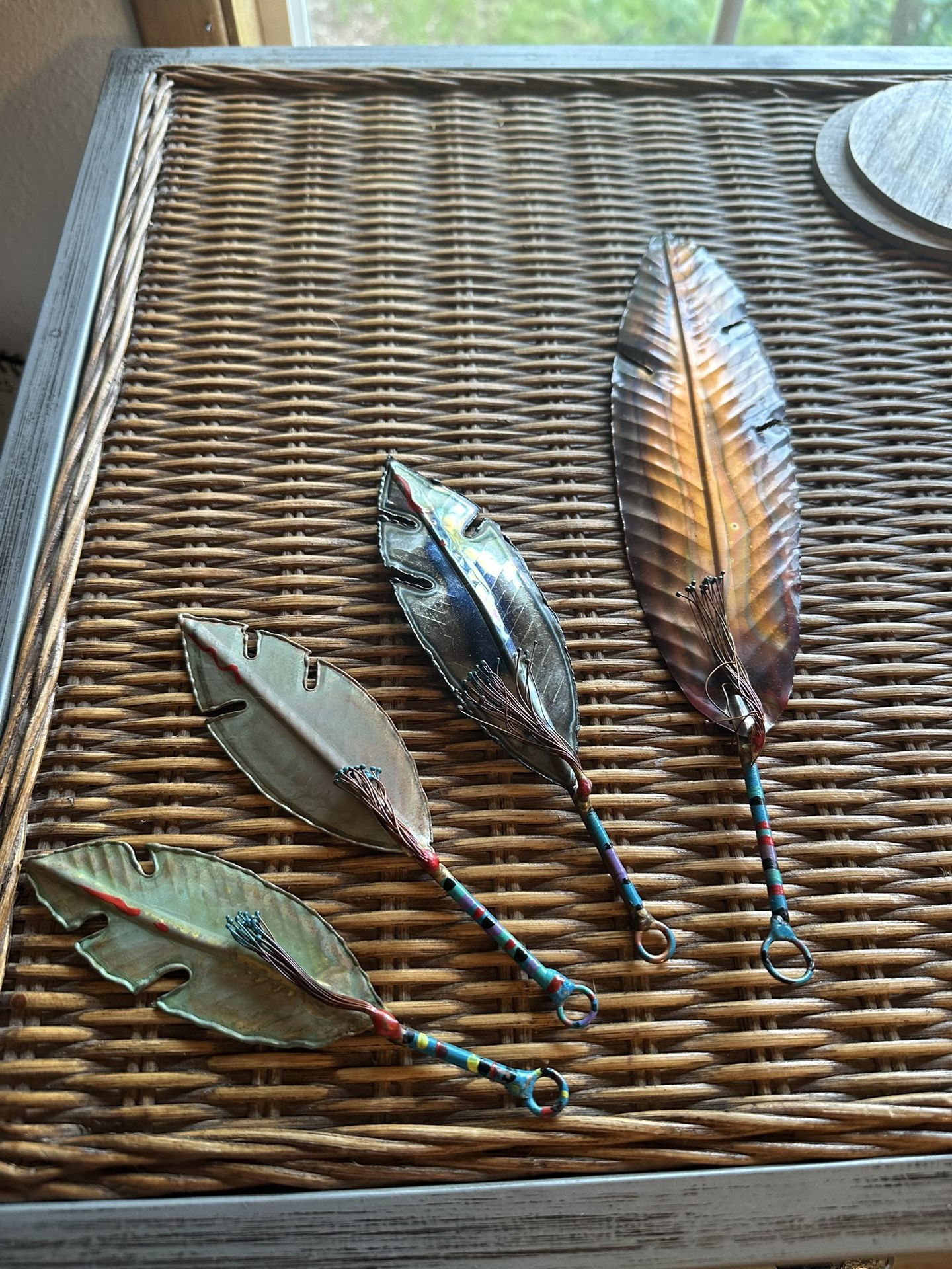 4 Beautiful Metal Feathers “Metamorphosis, a family business since 1974. Lou Hamilton, his Seminole wife Judy have created handmade sculpture reflecting their Native American Heritage.” Handmade in Oklahoma Last picture of one feather selling on eBay