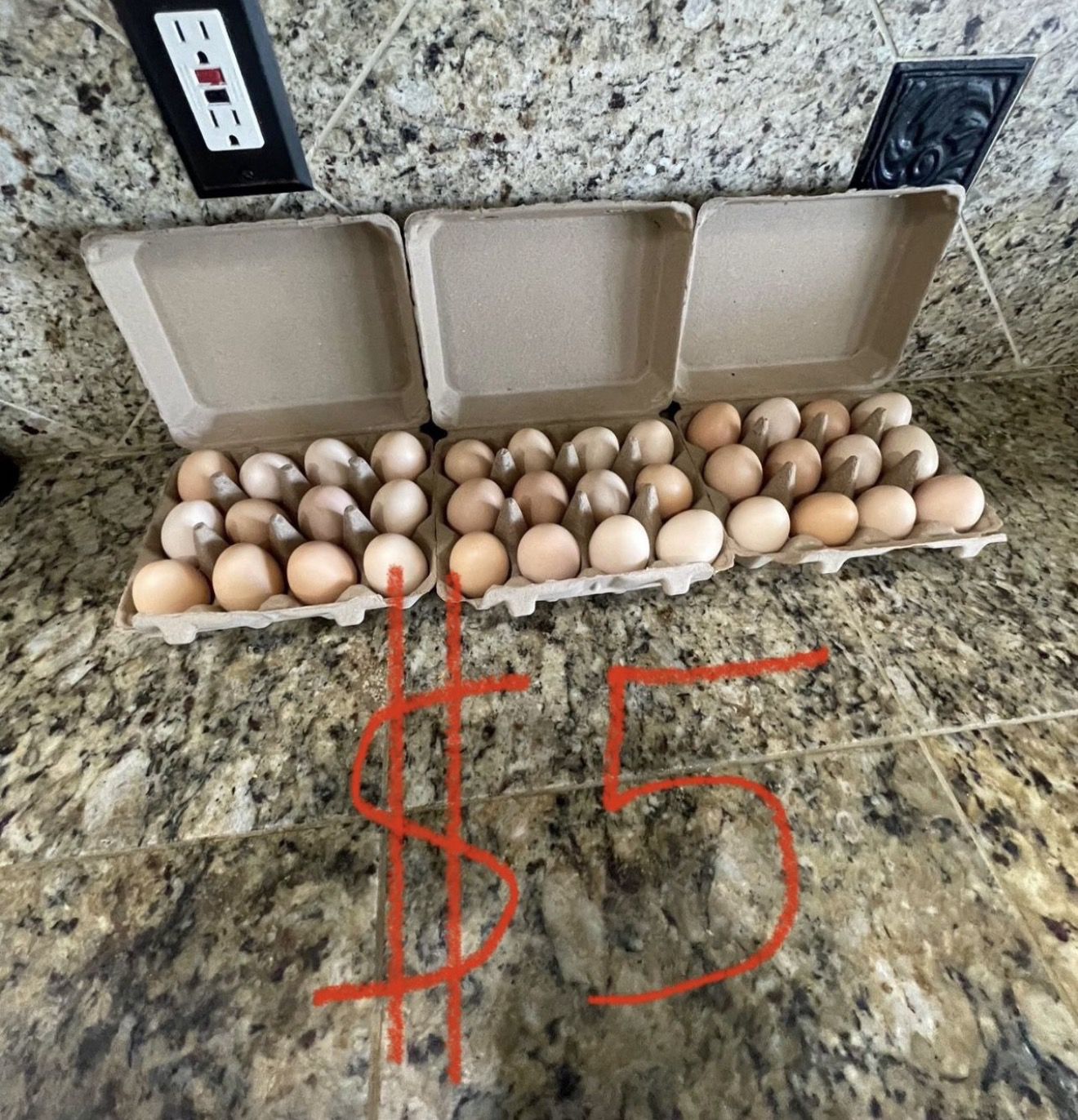 farm fresh eggs. Chickens are only fed the best! $5 per dozen