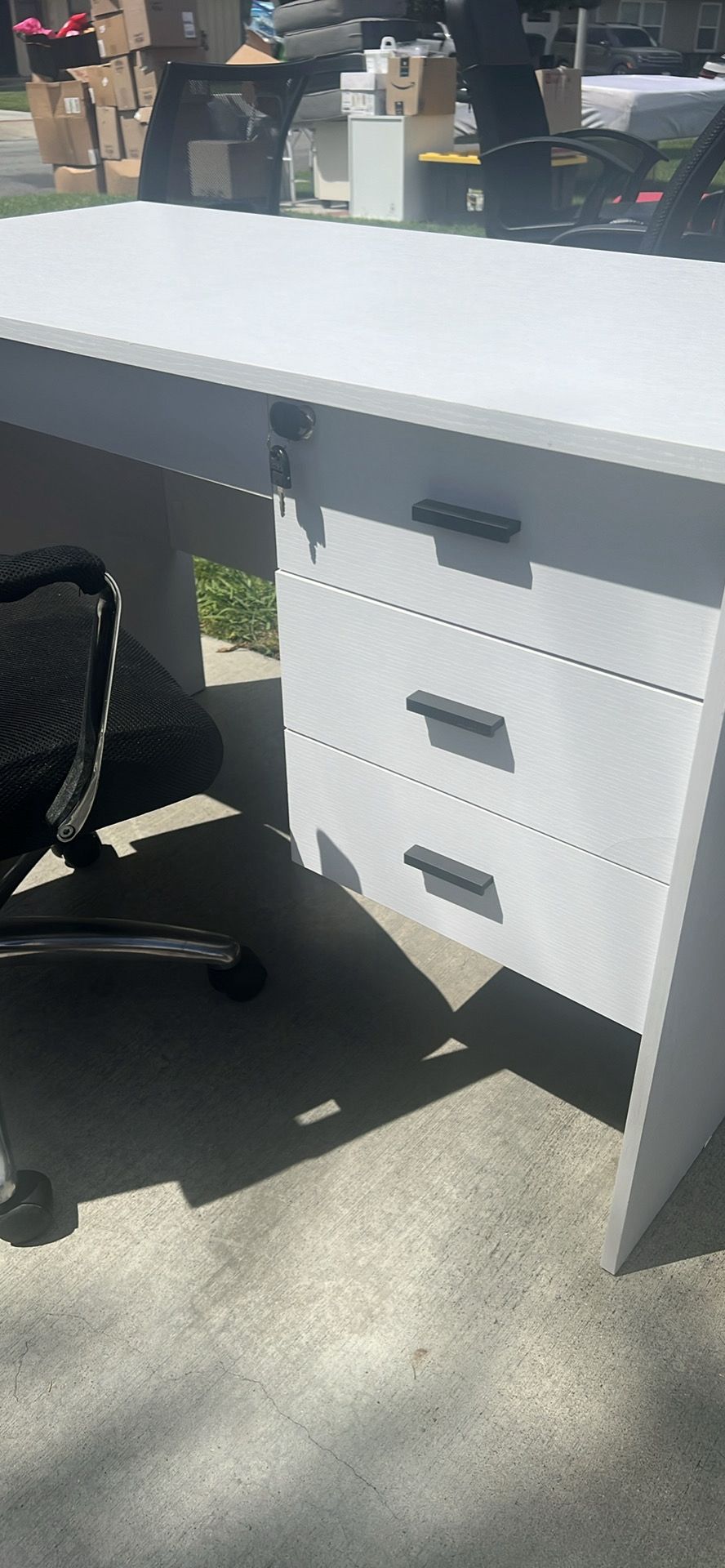 White desk with chair 3 available, $150 each or make me an offer I can’t refuse