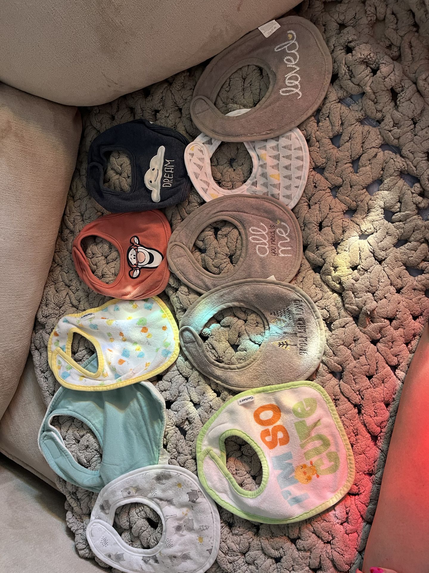 22 newborn mittens 49 pairs socks (0-6m) 47 hats (0-6m) 35 bibs: 15 (snap button, Handkerchief) 10 snap button bibs 10 Velcro bibs Various brands & styles Washed and most have never been used. Others gently used, like new. NO STAINS Asking $40 for everything OBO