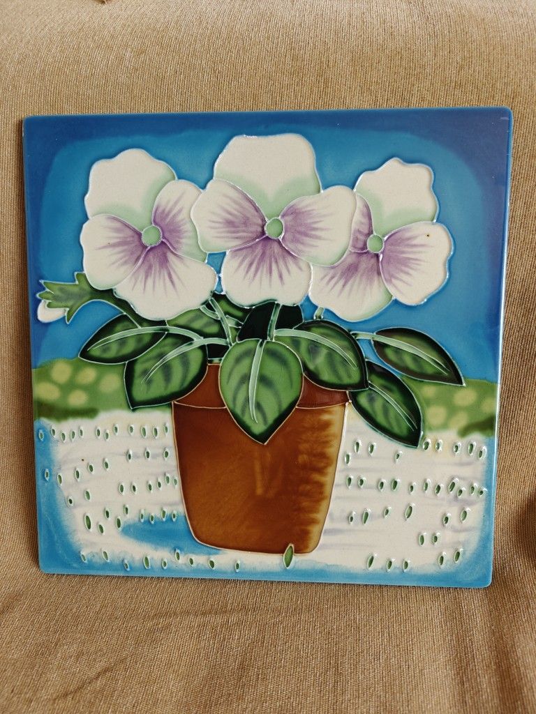 11.75x11.75 inches Brand new beautiful flower in a pot ceramic art. Can be hung on the wall, framed, or put on a display pedestal. Pick up near 137 Ave and Bird Rd