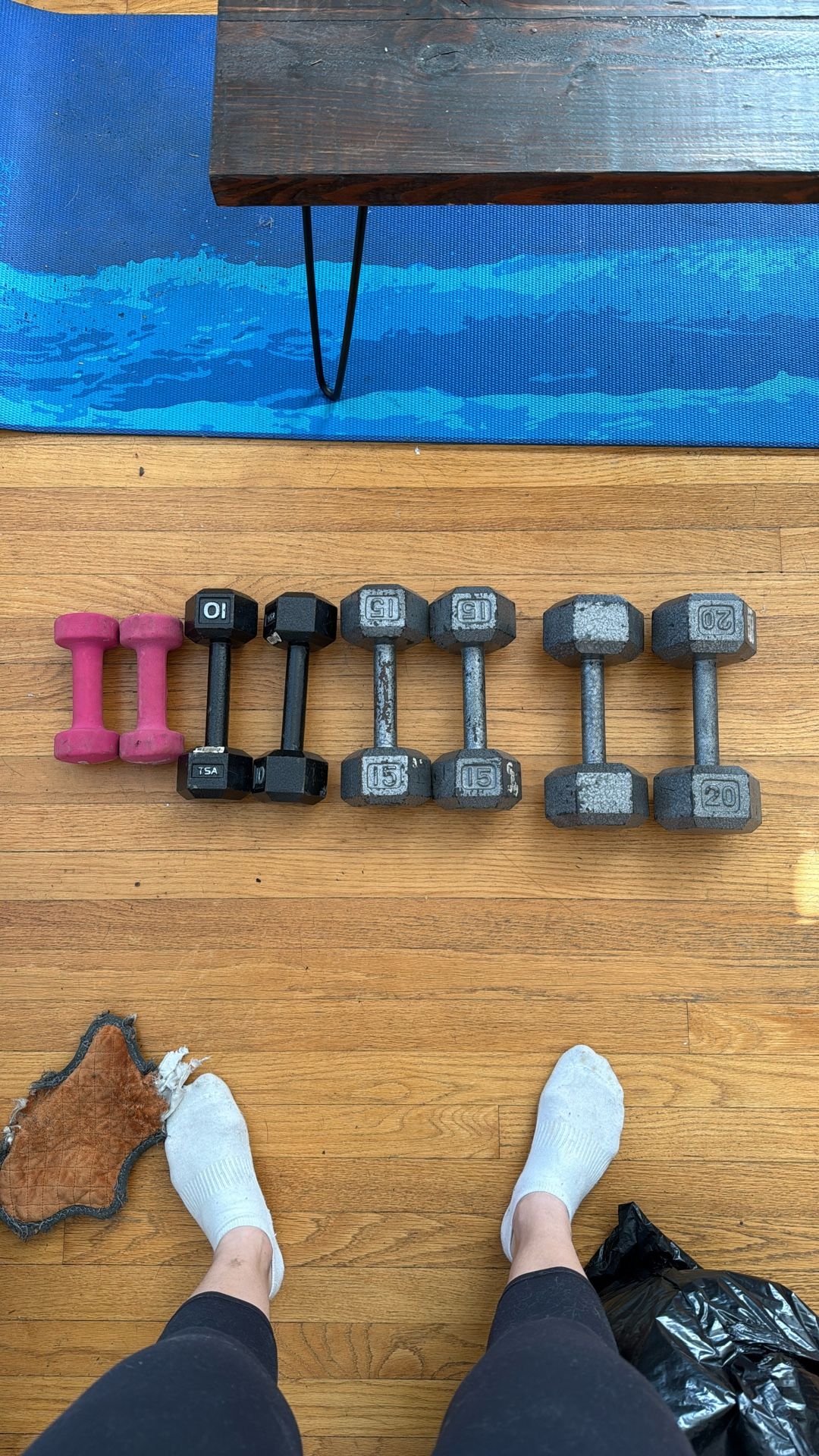 Dumbbells for sale - buy a complete set of 5-20lbs or buy just one set Weights & $ available: 5lbs - $10 10lbs - $20 15lbs - $30 20lbs - $40 Or $90 if you buy them all!