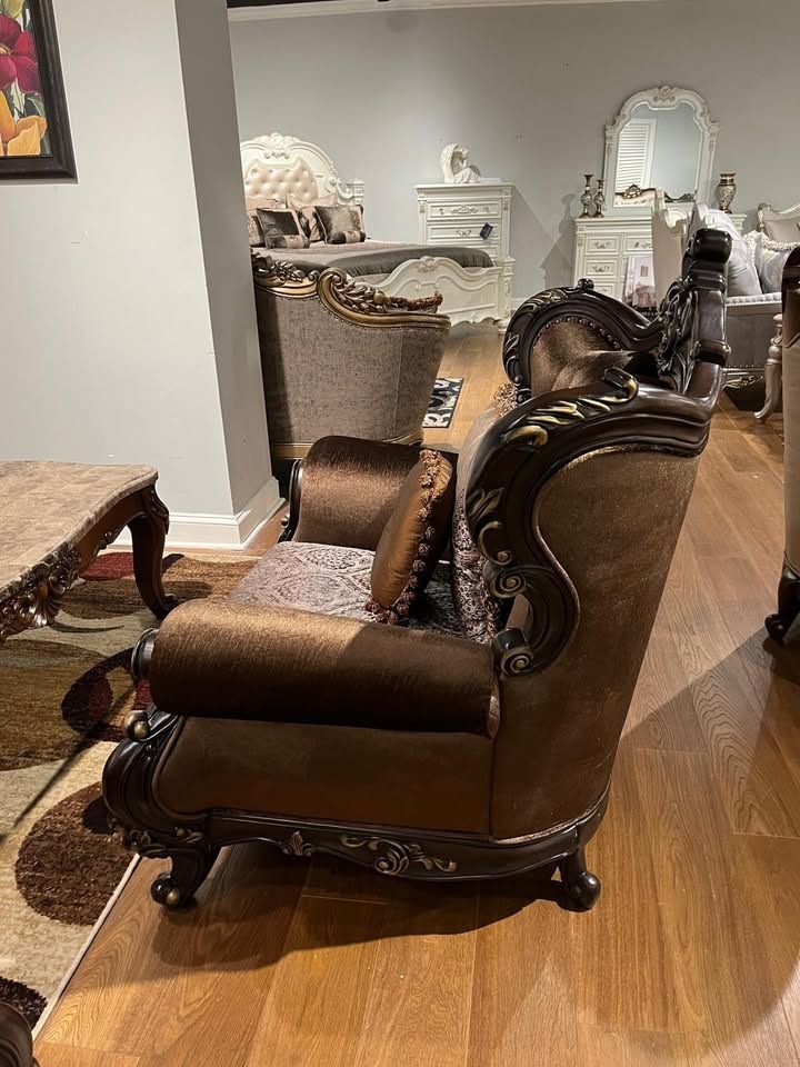 The Aroma Living Room Collection's is a refined addition that completes the ensemble's classic elegance, adorned in a rich cherry color with meticulous tufted upholstery details. Meticulously crafted and designed with an eye for sophistication, this Sofa set seamlessly integrates into the collection's cohesive aesthetic. The thoughtfully designed surface provides a stylish platform for decor or essential items, while the cherry hue and tufted accents add a touch of opulence to your living space. Dimensions Sofa 91 x 41 x 53 Loveseat 68 x 41 x 53 Chair 47 x 41 x 51 Sofa @ $1999.00 Sofa + Loveseat @ $3899.00 We offer various finance plans $39 down same as cash with no interest for 90 & 100 days. Longer financing plans are also available. Lowest prices, great quality products and exceptional service guaranteed. We also have a wide range of other living room, bedroom and dining room products to choose from at highly affordable prices. For buying visit Splendid Furnishings located at 4073 Lavista Road, Suite 311, Tucker GA 30084 or call 470-269-9301.