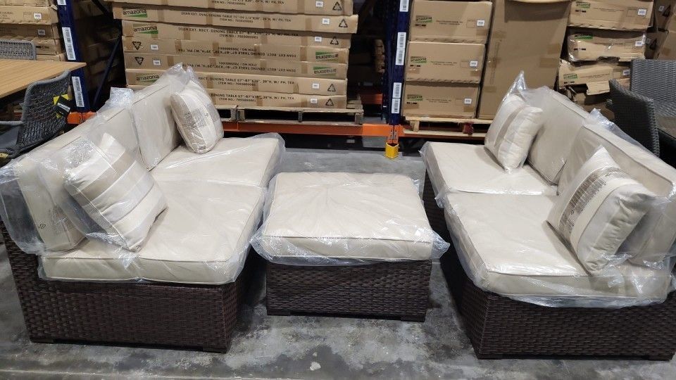 BRAND NEW ORIGINAL PACKAGING OUTDOOR 5-PIECE SECTIONAL SET WITH SUNBRELLA BEIGE CUSHIONS