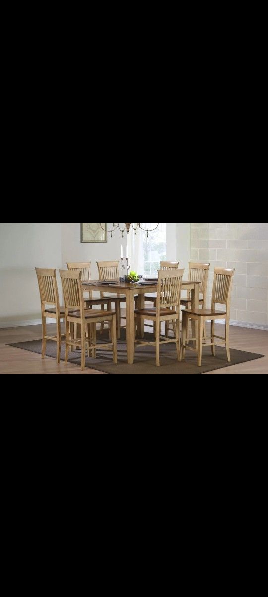 Dining set in good condition Comes with 8 chairs Adjustable table size Sturdy wood material . Top table with no stains