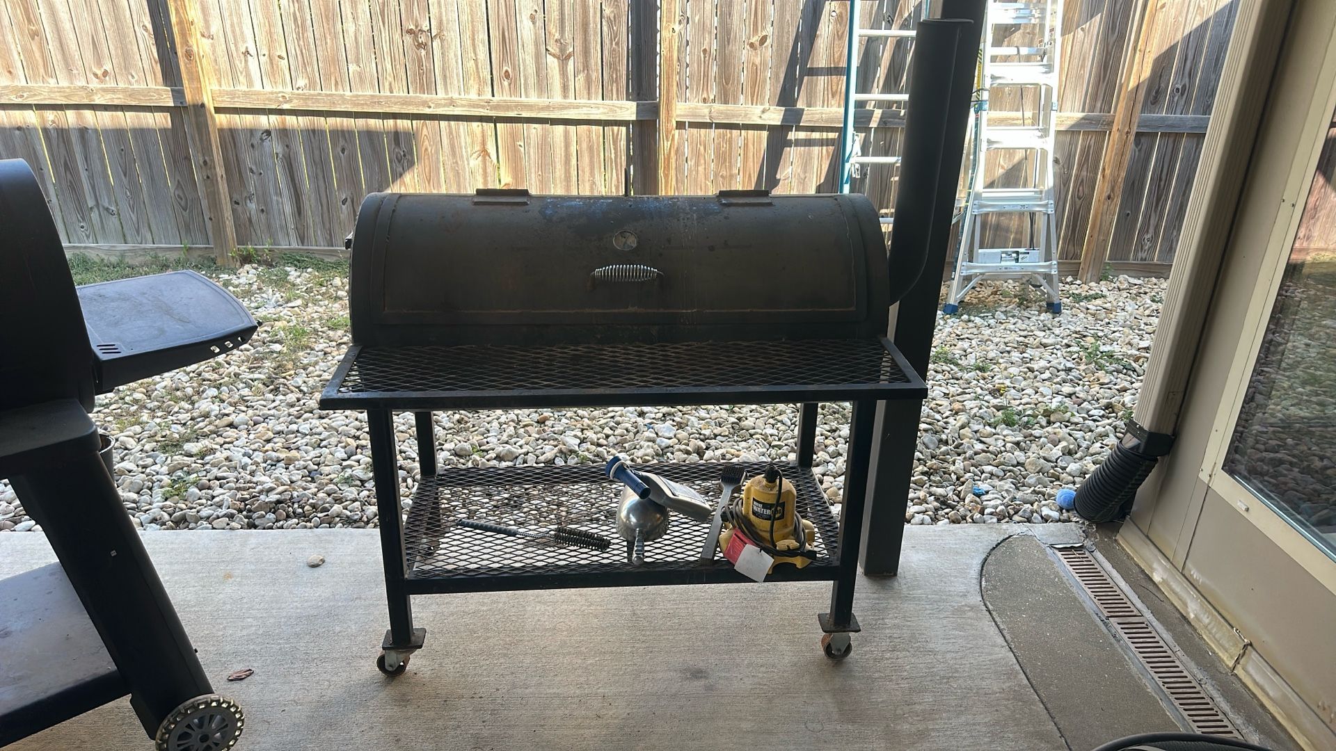 Heavy duty BBQ pit guy that worked for me made it out of 20” pipe very heavy duty will last a lifetime just needs little paint but cooks very good I have used it for 2 years now have pellet grill no longer need 250does have caster wheels bottom storage rack grate inside slides out In very good condition will make someone a great pit