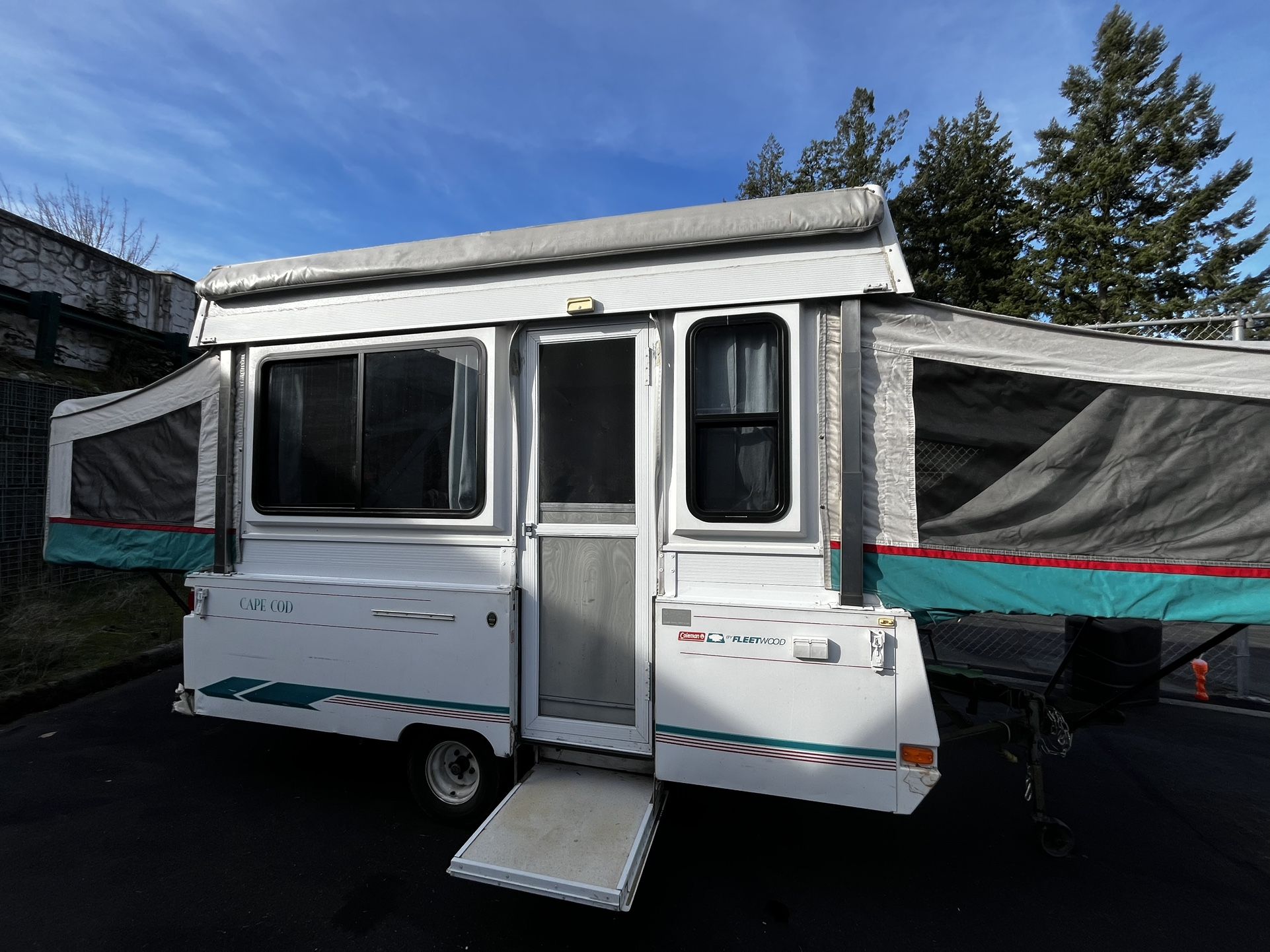 Trailer extends to 22.5 feet long and roughly 7 ft tall inside. Has been stored under cover in a dry place for the past 7 years. In good shape and clean. One side is a queen size bed and the other is a king. Table area turns into another sleeping area. Sink with new faucet for easier washing, fridge, 3 burner stove top, outside stove top. Comes with 2 propane tanks, a brand new camping portable toilet, space heater, and fake grass rug for under the awning. A few more items as well. Always put away dry and cared for.