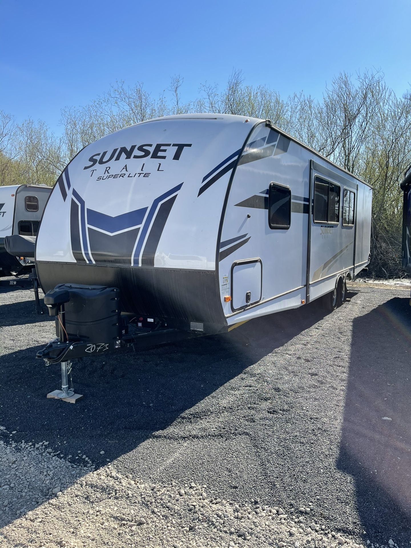 The 2021 CrossRoads Sunset Trail Super Lite SS288BH is a lightweight travel trailer designed to sleep up to 8 people, measuring about 33 feet long. Key features include double-size rear bunks, a private front bedroom with a king bed, a rear corner bath, an outdoor camp kitchen, and a pet station. This model combines family-friendly amenities with luxury features like solid surface countertops, an optional fireplace, and residential-style kitchens. Asking 32000 firm has 2 years left of extend warranty plus 2001 Chevy to pull trailer it has the 8.1 and runs great has 198k miles it’s a 2wd with newer tires