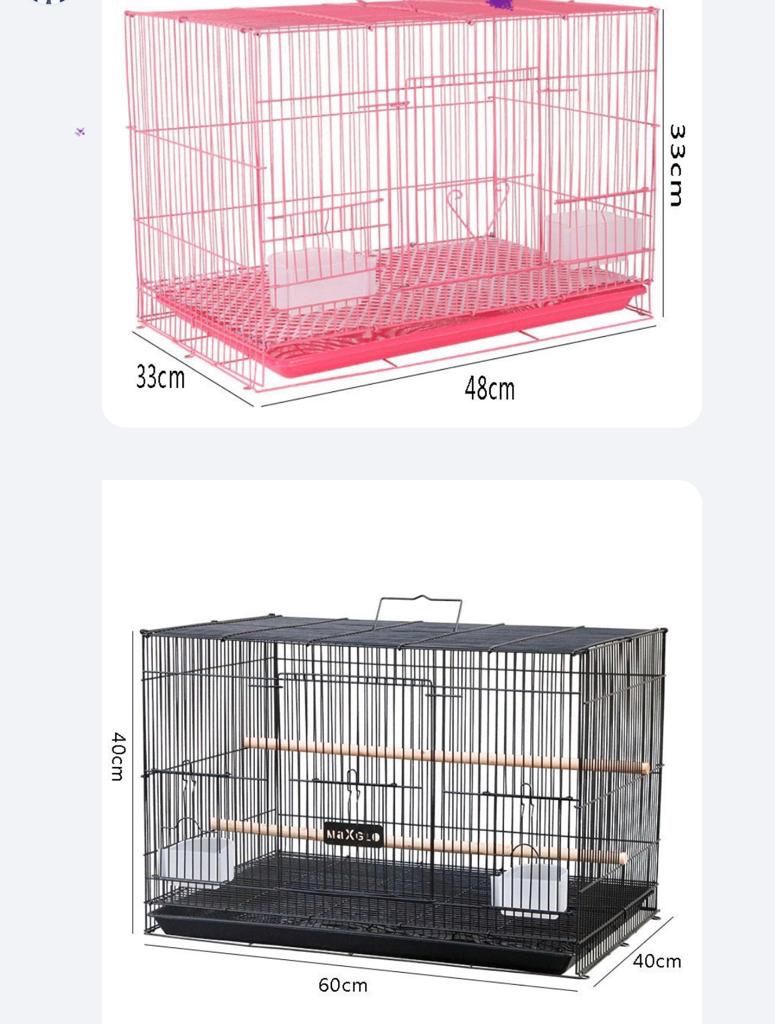 Jaulas y juguetes para pájaros en estado nuevo, de excelente calidad, diferentes tamaños y colores al mejor precio del mercado, vendidos individualmente o por cantidad para negocio.