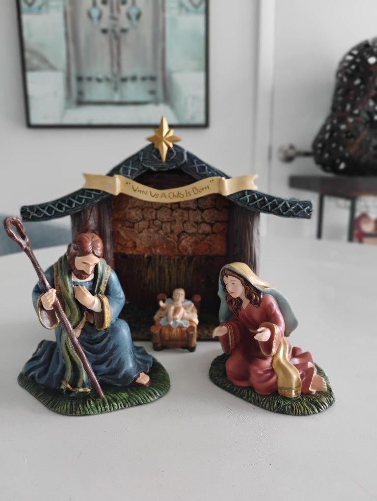 Vintage nativity set in original box Hawthorn, ceramic, certificate Perfect condition