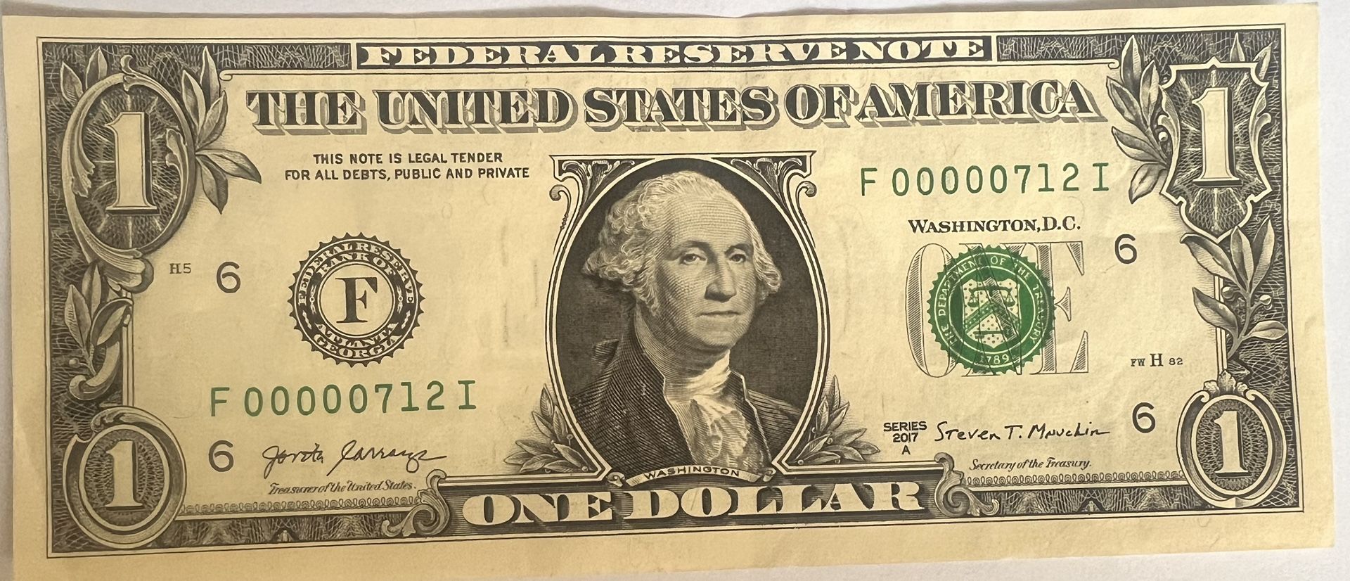 2017 A US Treasury Note One Dollar