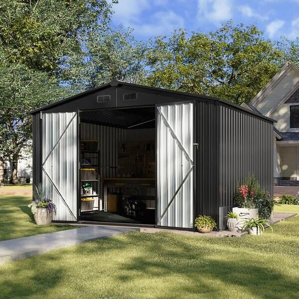 Black 10 ft. W x 10 ft. D Storage Metal Shed with Double Door, 4-Air Vents