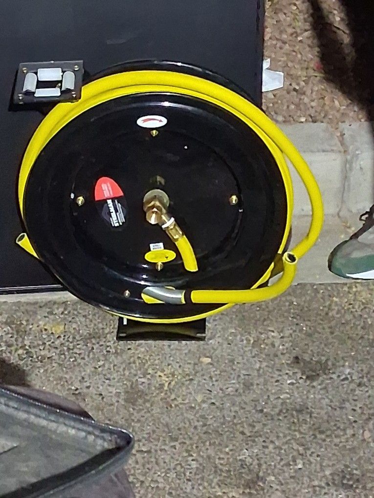 Retractable Air Hose Reel, 1/2" x 50 Ft Auto Rewind, Heavy Duty Steel Air Hose Reel with 300 PSI Rubber Hose,