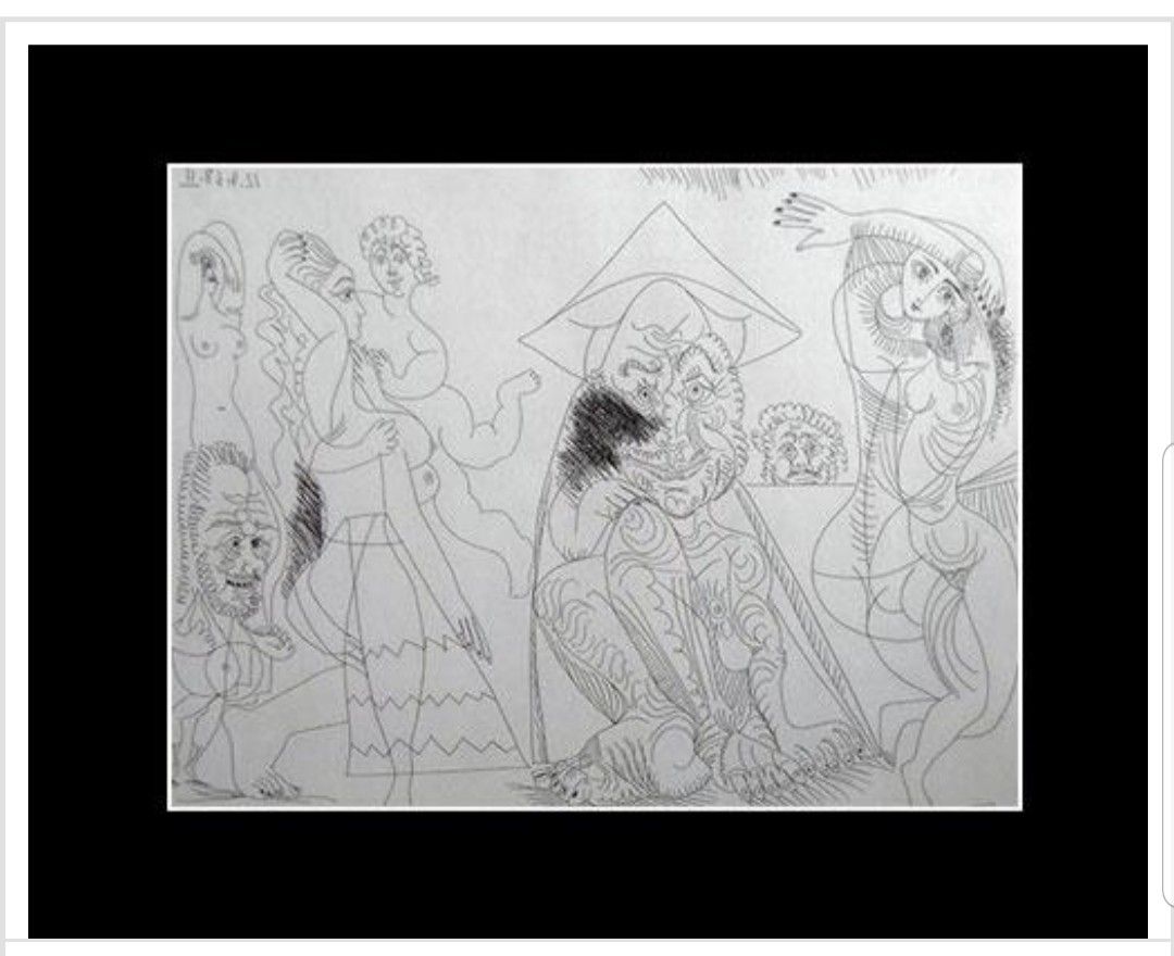 COLLECTIBLE VINTAGE BLACK AND WHITE PLATE FROM 'PICASSO 347' No 32 CIRCA 1970 PUBLISHED BY MAECENAS PRESS. COMES WITH MOUNTED ON A 16X20 INCH BLACK MUSEUM BOARD. ART TITLE: FROM 'PICASSO 347' no 32 SIZE: 16X20 (SIZE IS IN INCHES)