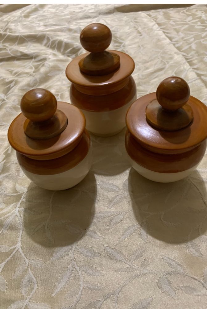 Wooden Tea Leaf Container Sugar Coffee Storage Kitchen Holder Set Of 3
