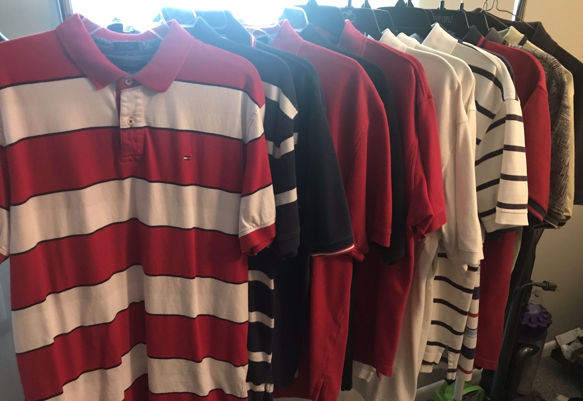Men’s Dress Shirts Polo & Button Up Long Sleeve Most all are size large, few medium. Most are Tommy Hilfiger, Polo, Izod. All 5.00 each