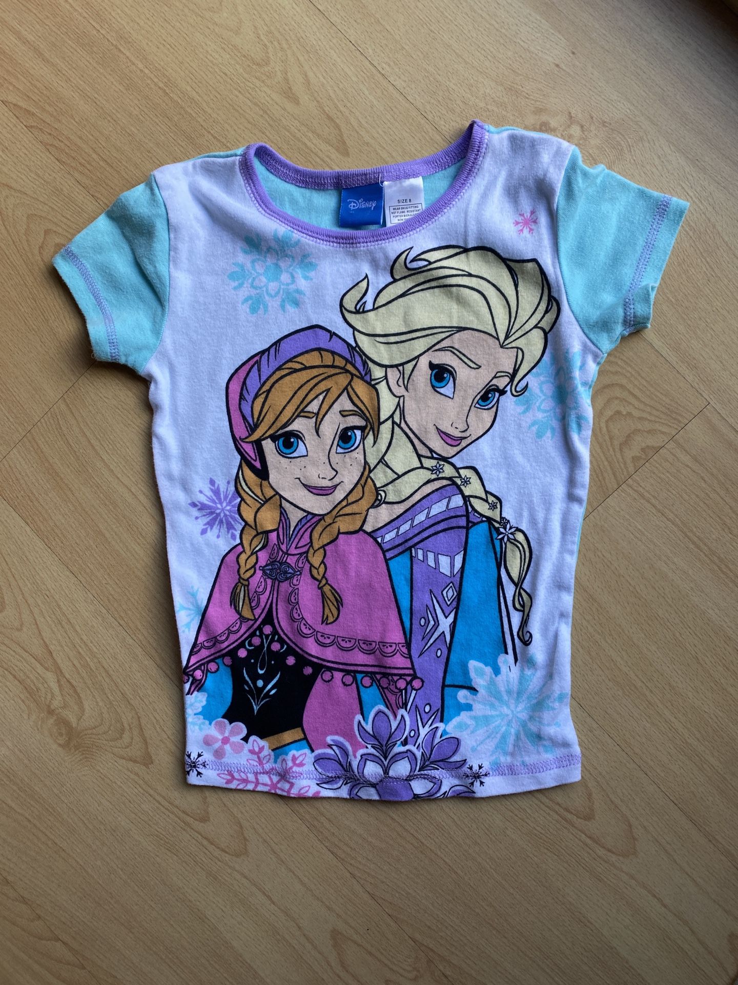 Excellent Used Condition Smoke and pet free home 100% cotton Elsa Anna Colorful Girls Cute Pajama Casual Shirt Top Teal Purple Pink Purple White Snowflakes Multicolor Basic Short sleeve
