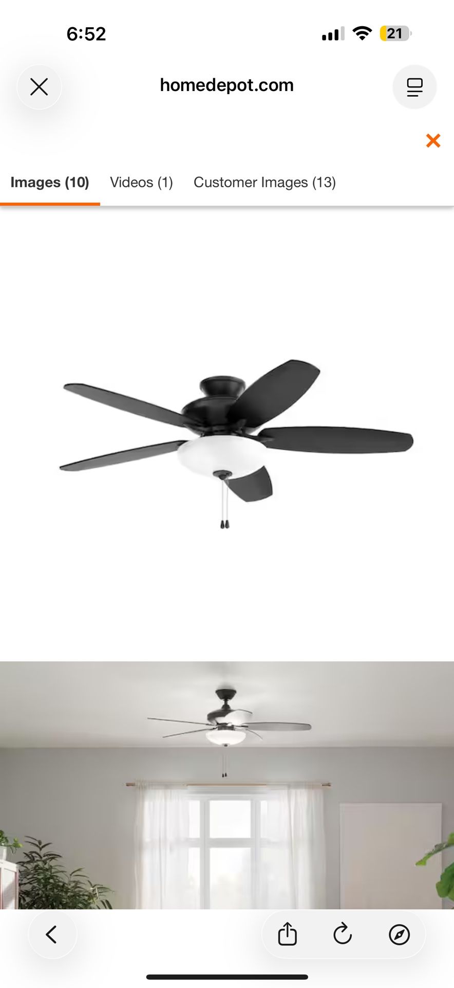 Brand New in box, original almost $150 Renew Select 52 in. Indoor Satin Black Dual Mount Ceiling Fan with LED Bulbs with Pull Chain