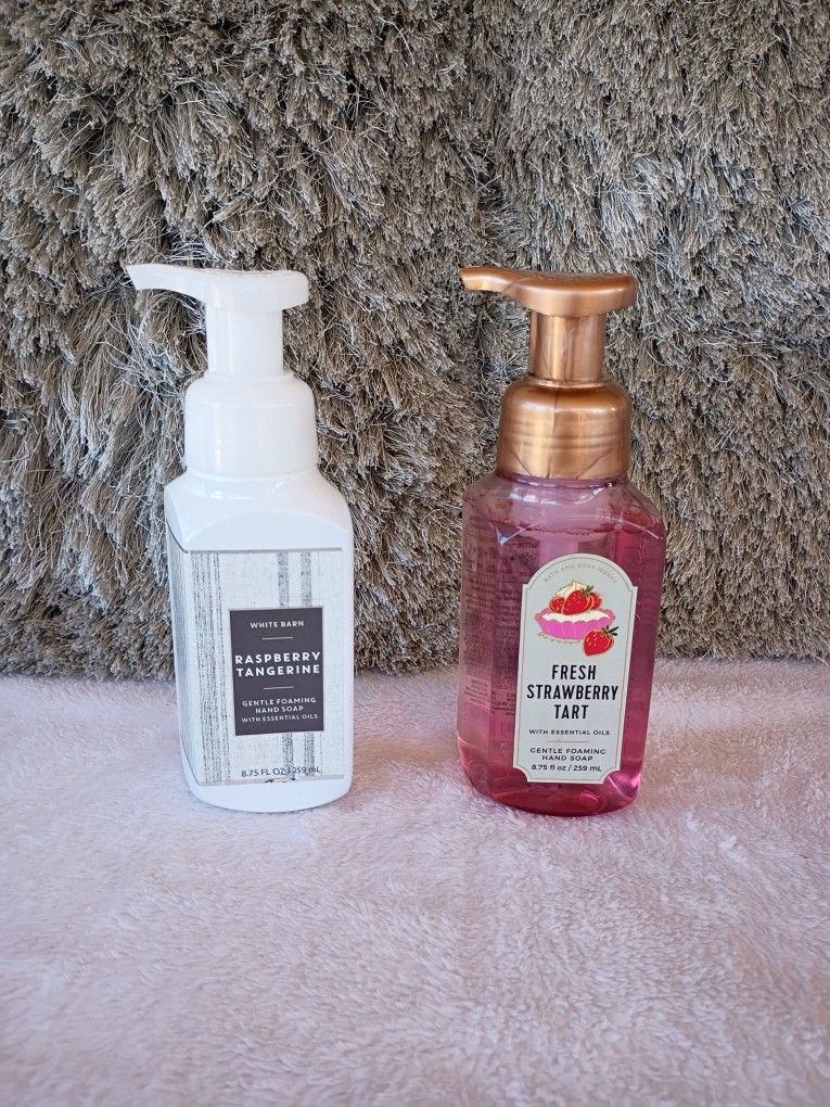 Experience the refreshing scent of Raspberry Tangerine with White Barn's Gentle Foaming Hand Soap. This white soap offers a luxurious lather that cleanses and invigorates your senses. Both are brand new 8.75 fl oz bottle see pictures for more details.