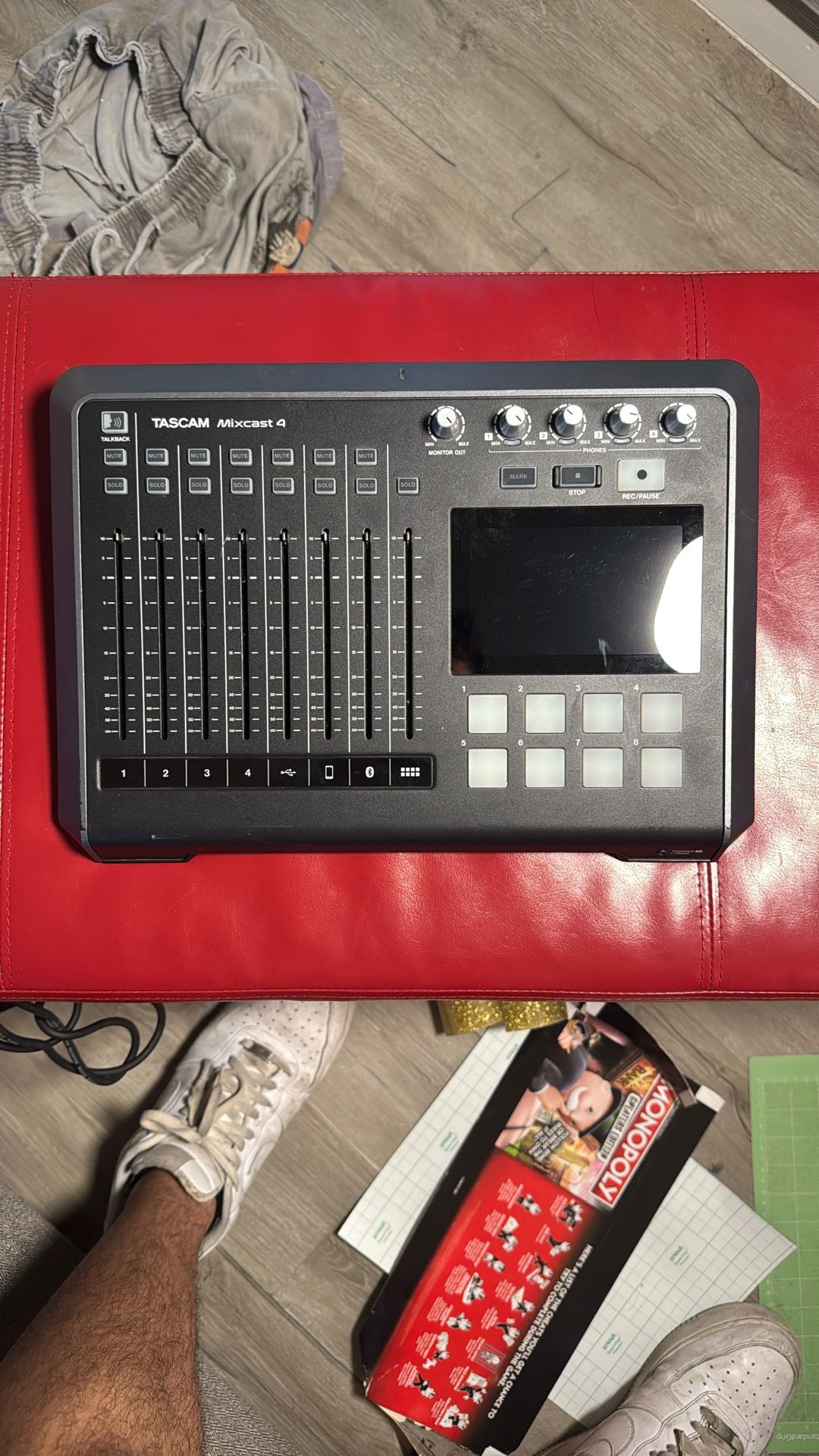 This Tascam Mixcast 4 is in great working condition and has been lightly used. It’s an all-in-one podcasting and recording console with everything you need for multi-mic setups, live streaming, and high-quality audio production. Key Features 4 high-quality mic/line inputs with Tascam preamps 8 customizable sound pads for instant effects Large touchscreen interface for easy control Built-in multitrack recording to SD card or computer Integrated mix-minus for phone calls/remote guests USB, Bluetooth, and TRRS connectivity Perfect for podcasts, livestreams, interviews, and home studios Condition Fully functional with no audio issues Light cosmetic wear Well cared for in a smoke-free environment Included (Adjust based on what you have) Tascam Mixcast 4 unit Power supply