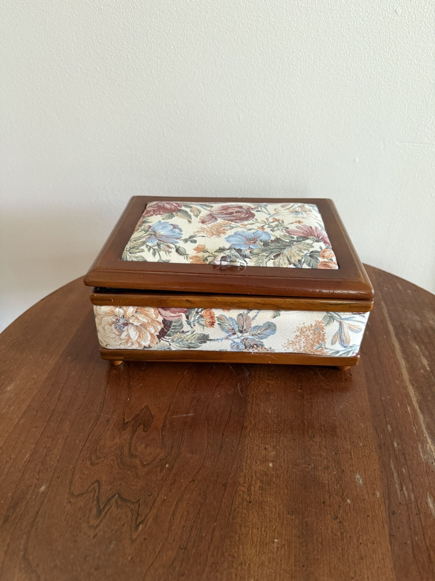 Vintage Wood Jewelry Box With Floral Fabric Cottagecore