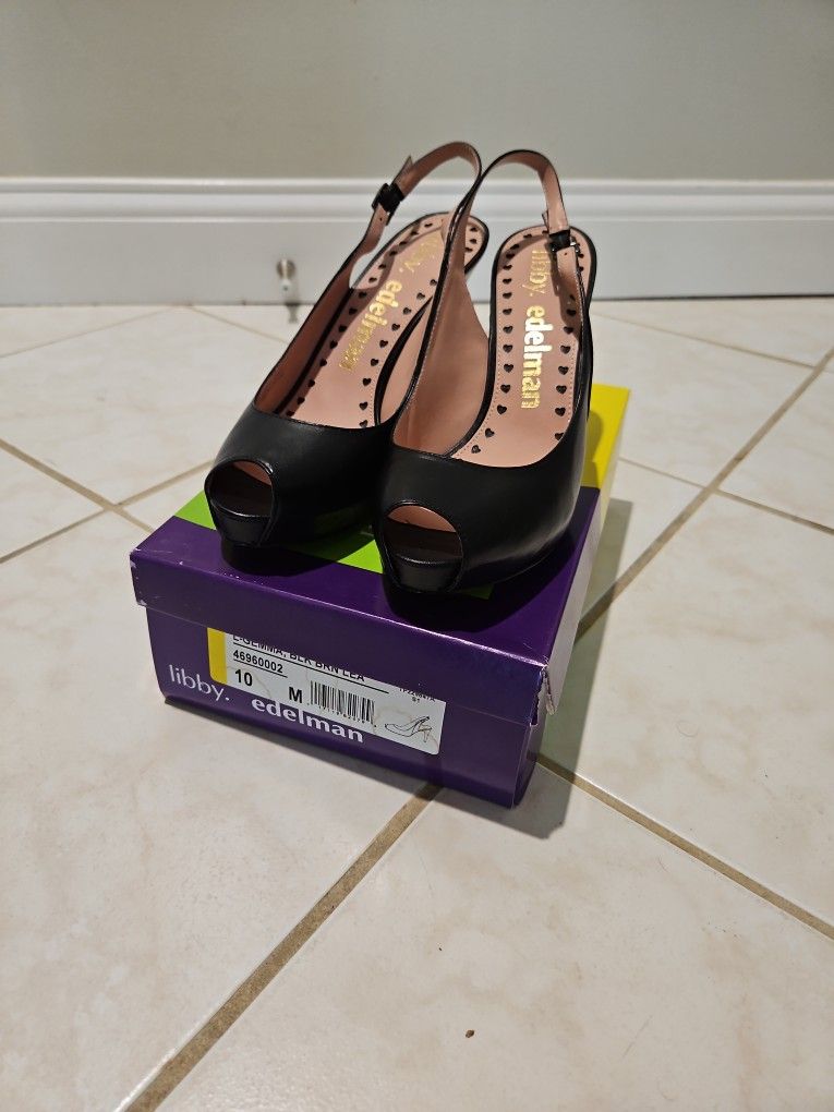 Libby Edelman Black Peep Toe Heels - Brand New Size 10