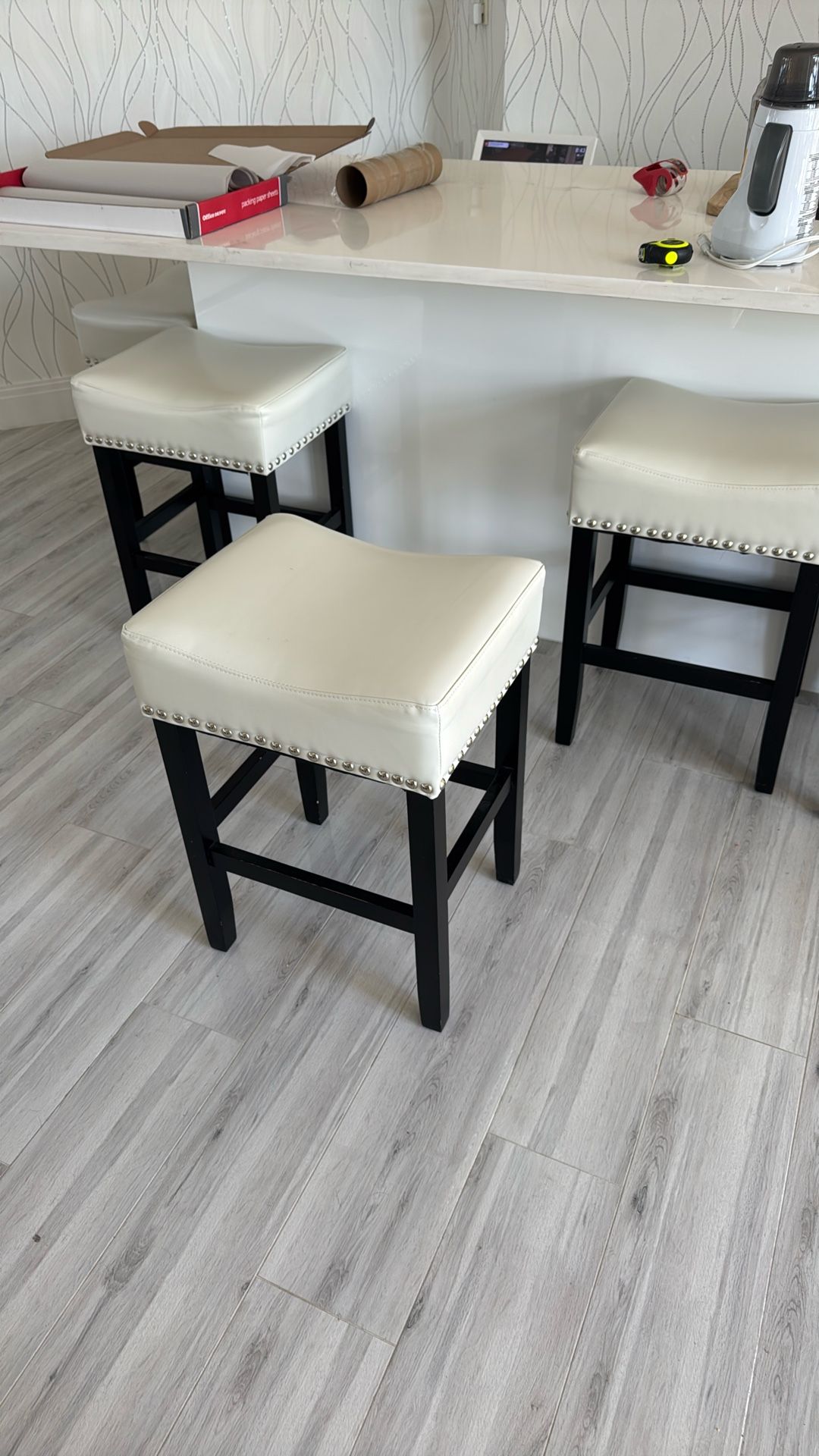 White Leather Bar Stools.