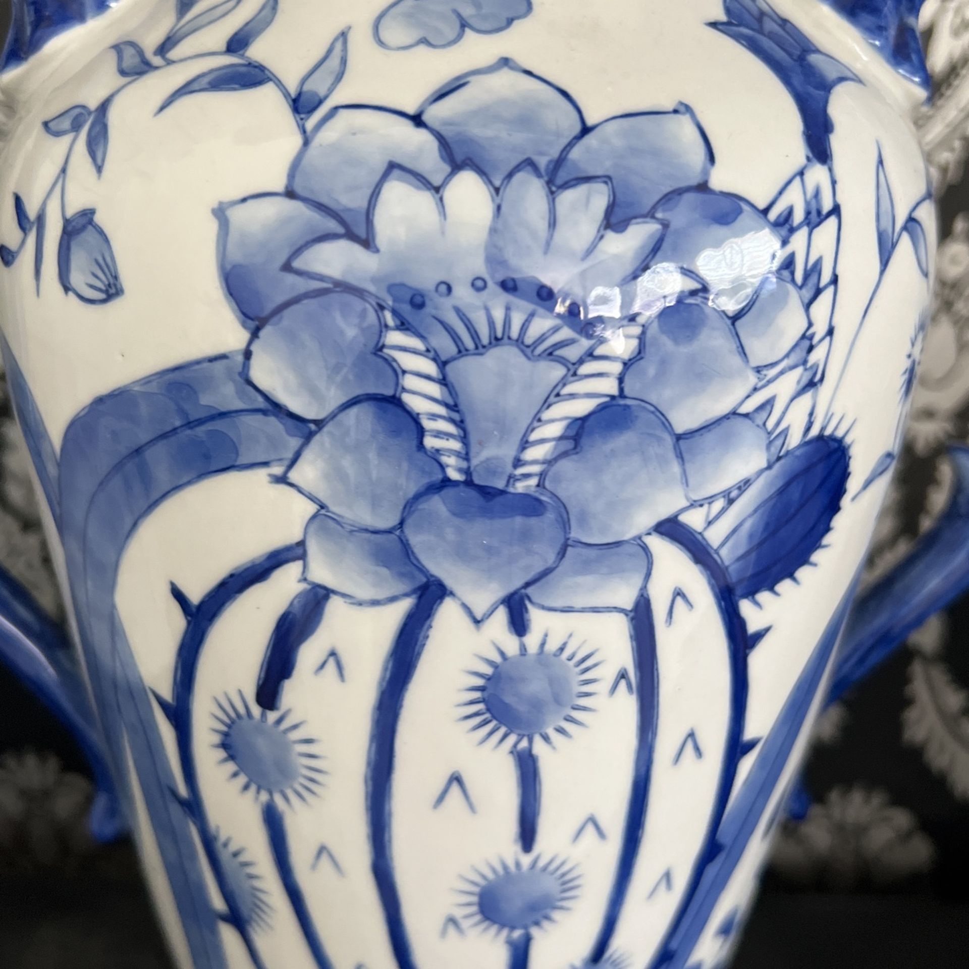 This is white n blue vase, well maintained, no chip. It’s about 14” tall.