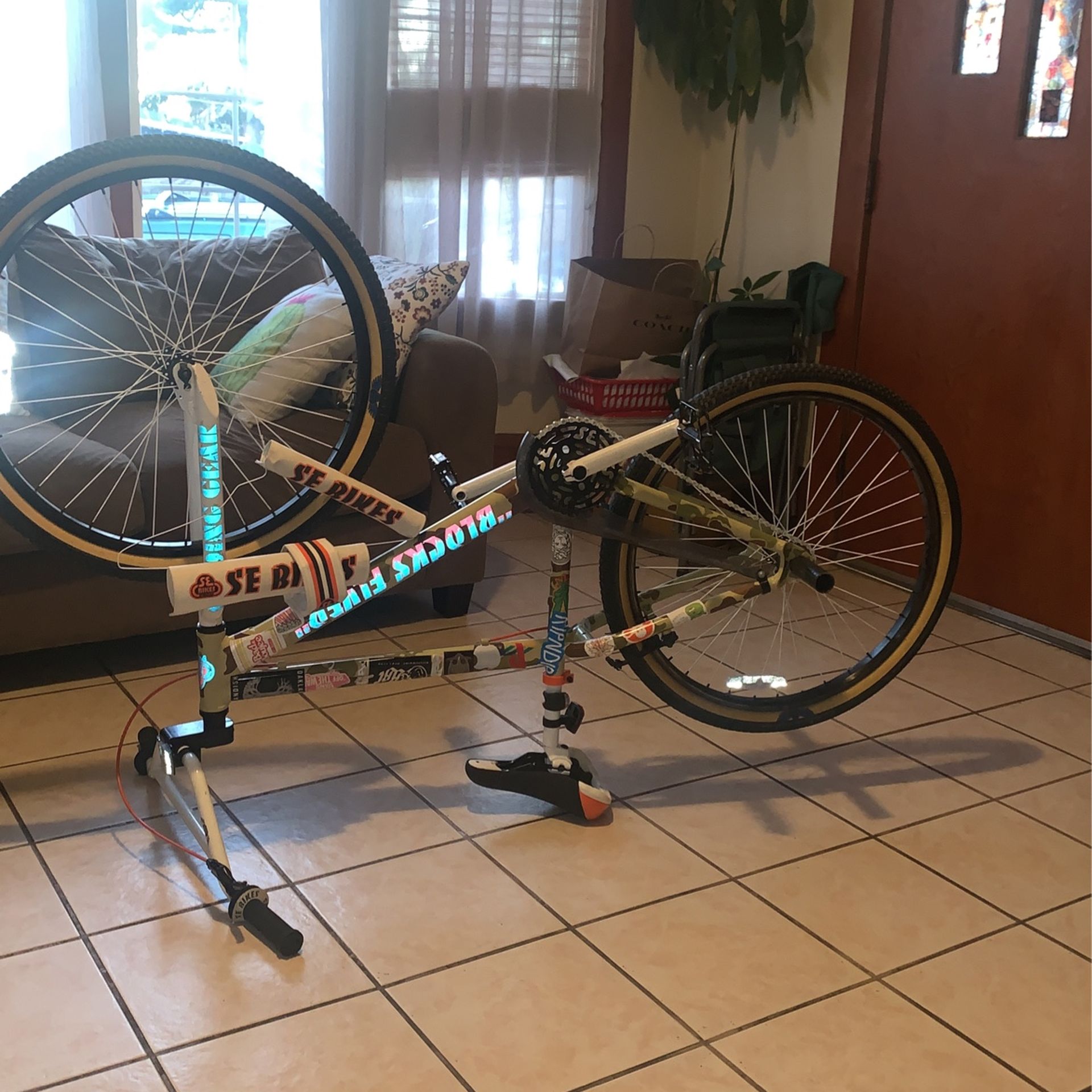 26” rims Everything on the bike is original besides the reflective ride out supply stickers No problems with it, good gear and brakes Will take off the other stickers before hand if you want me to as well
