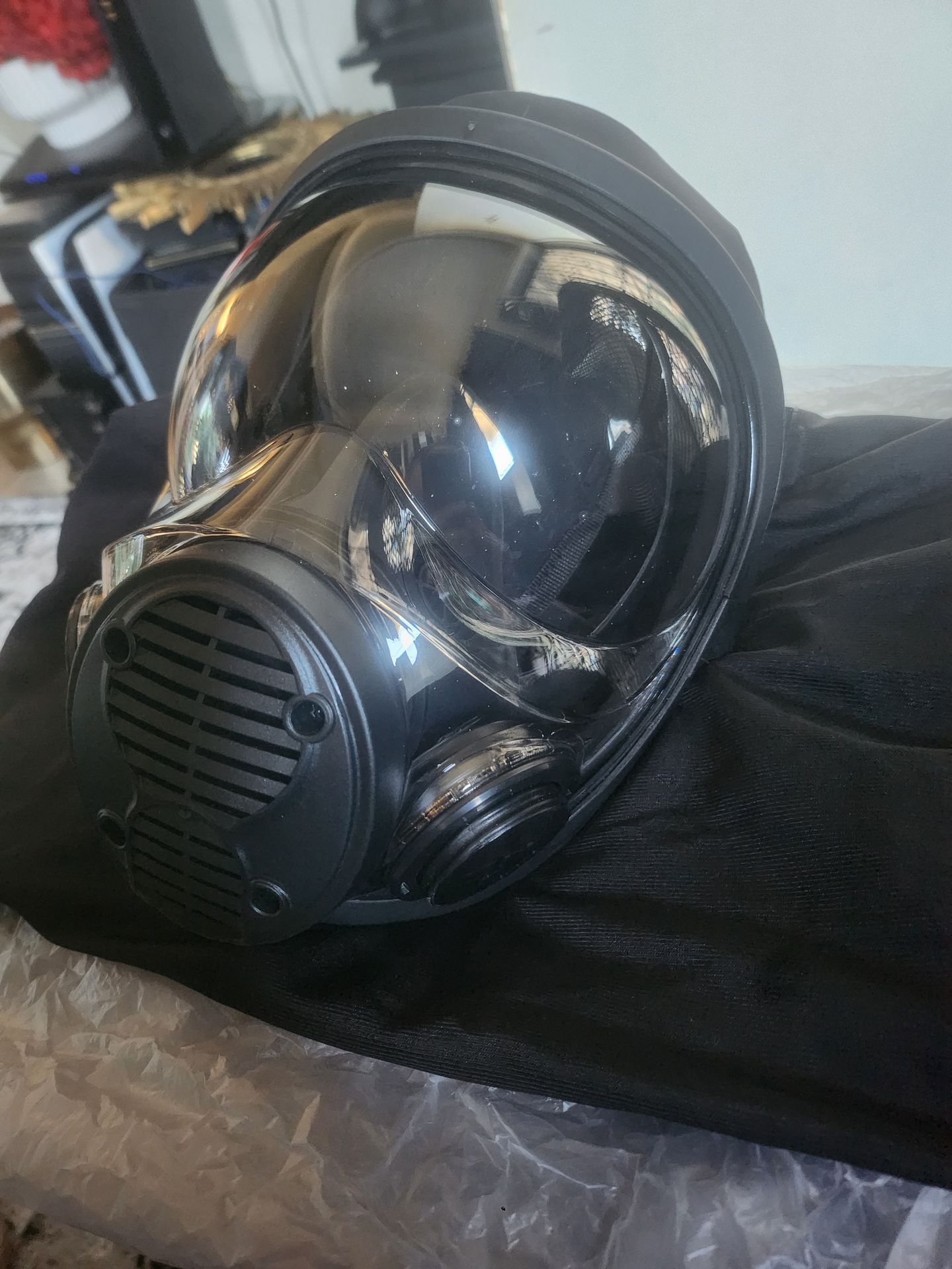 Gas Masks Brand New never used. Comes with storage bag. 2 Available. Firm Price $180 this week (each*) Clear/or Black screen (On Picture is the Clear one) Brand new, kept away from sunlight. Universal size fit. Firm, no trades. I also have filter to sell @ $70. Filter protects against smoke, fallout, vapors, all the above. You pick up. Or drop off for 20 extra* within 3 miles.